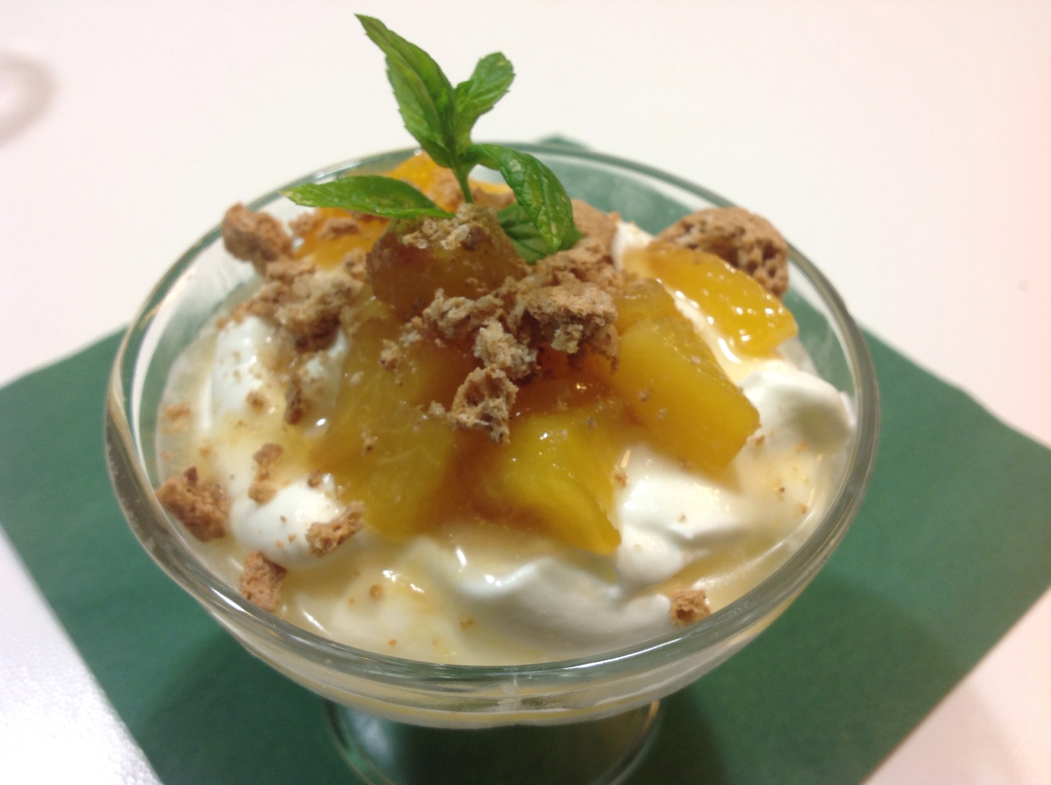 MOUSSE ALLO YOGURT CON PESCHE E AMARETTI