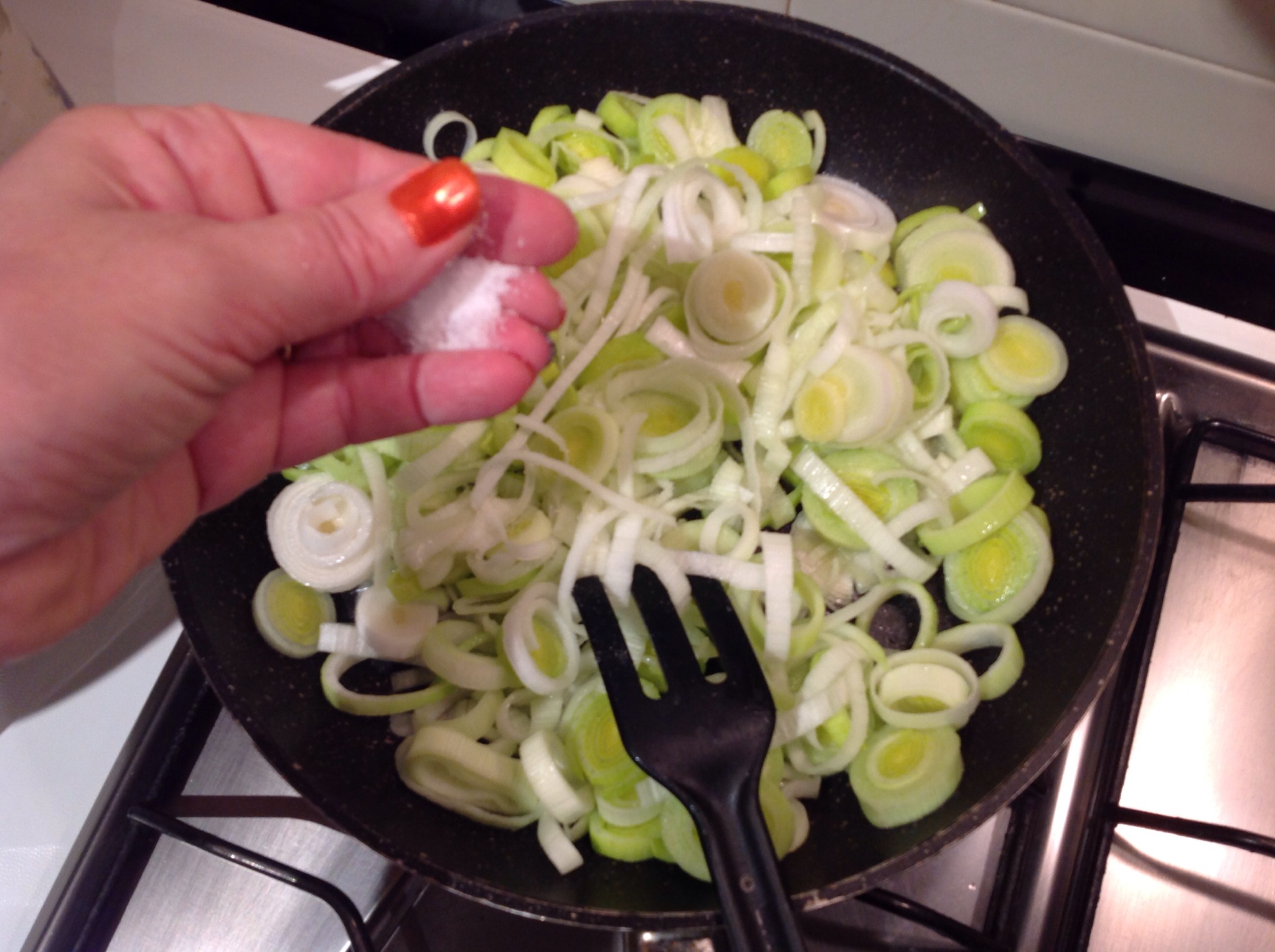 Li verso in una padella con olio extravergine e li lascio appassire, aggiungo poi sale e pepe