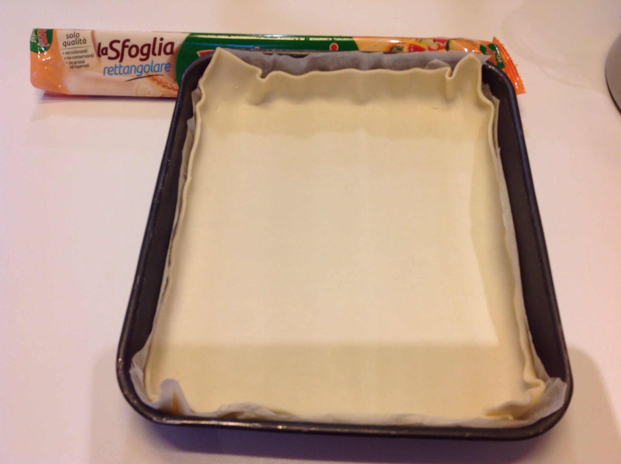 Srotolo la sfoglia e la appoggio in una teglia da forno