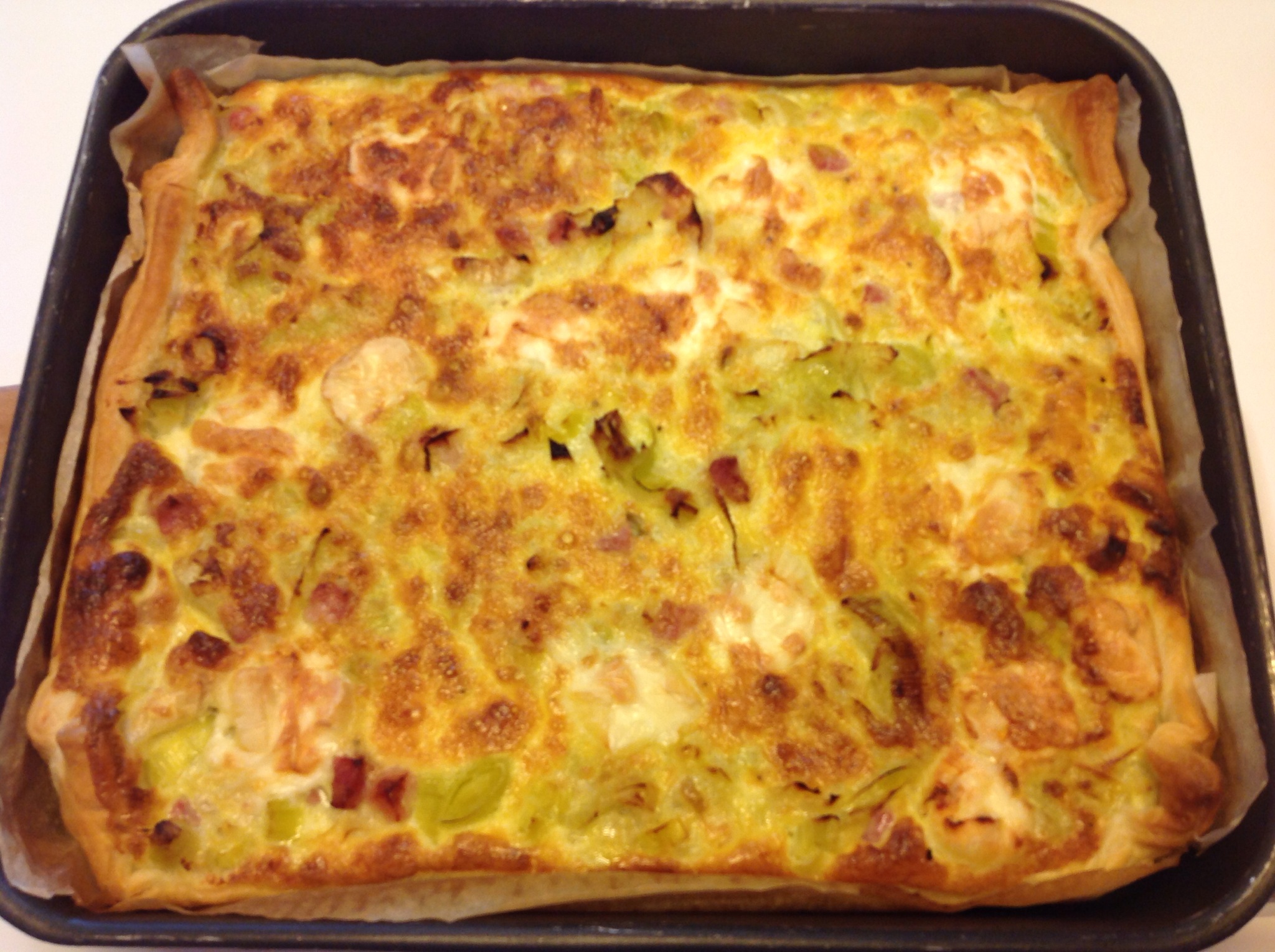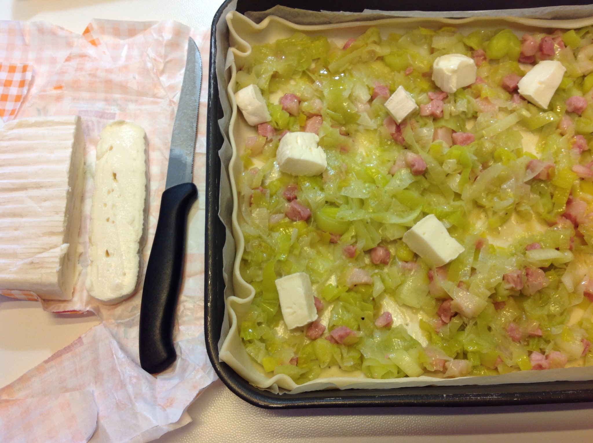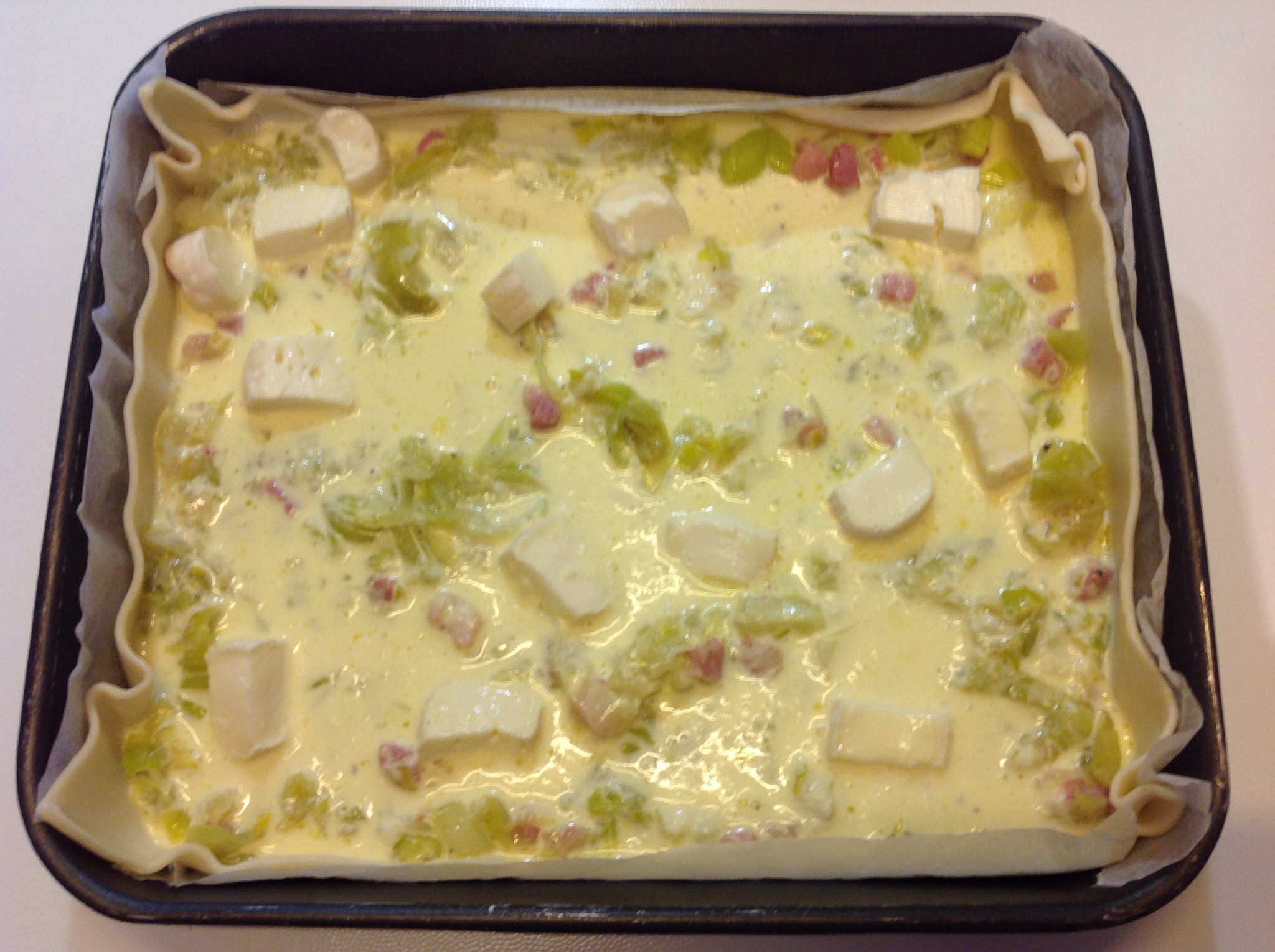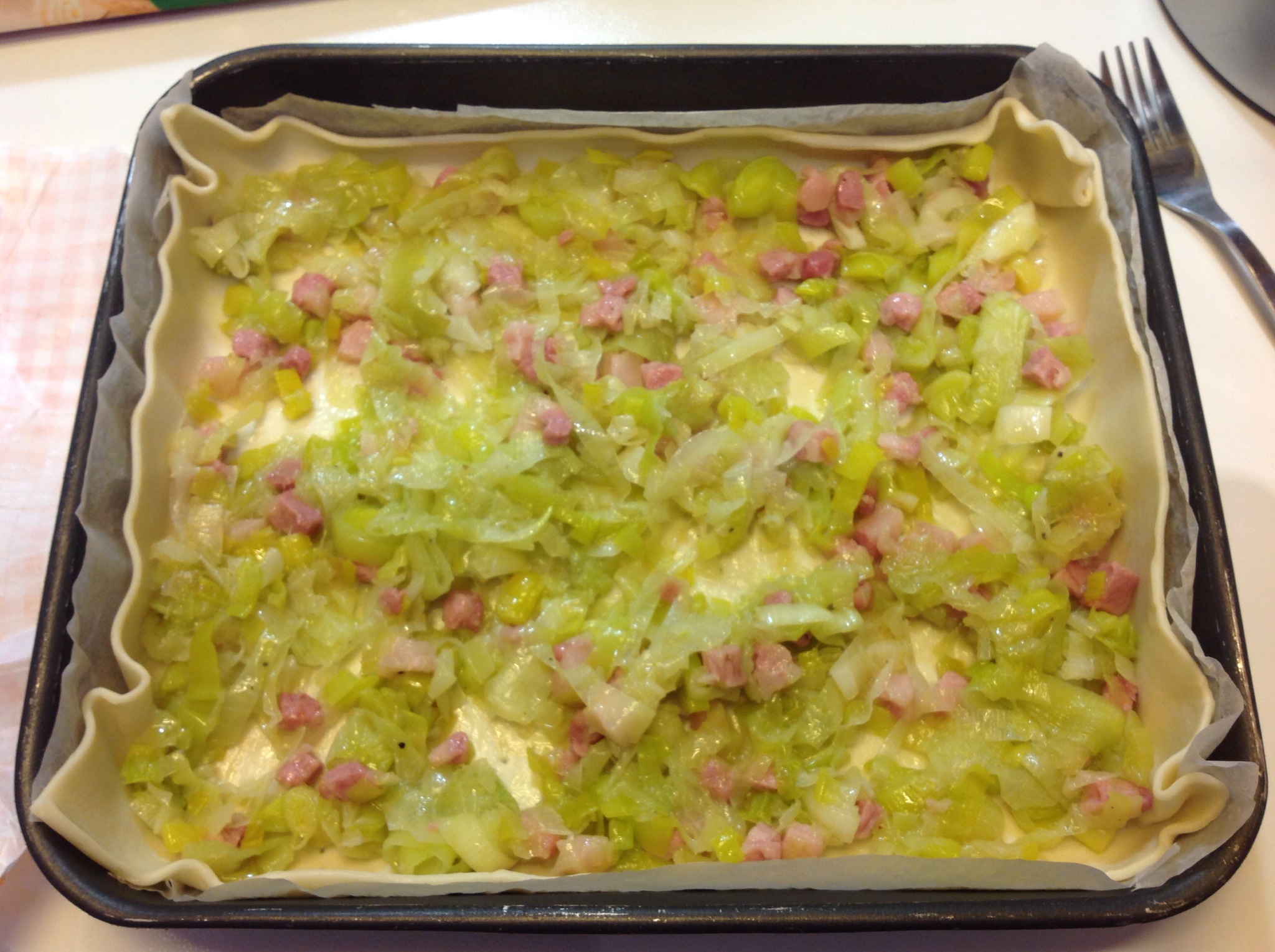 TORTA SALATA CON PORRI PANCETTA E ROBIOLA
