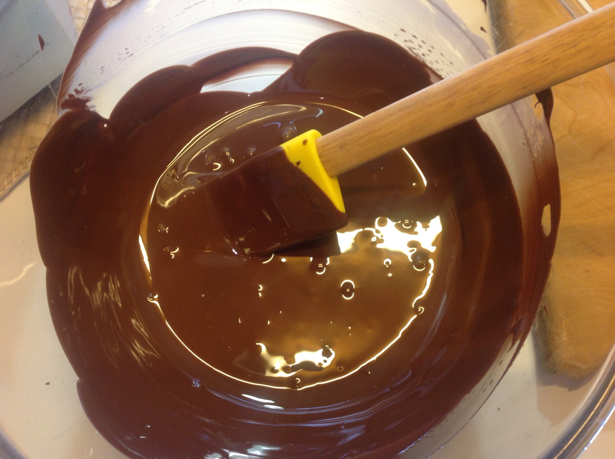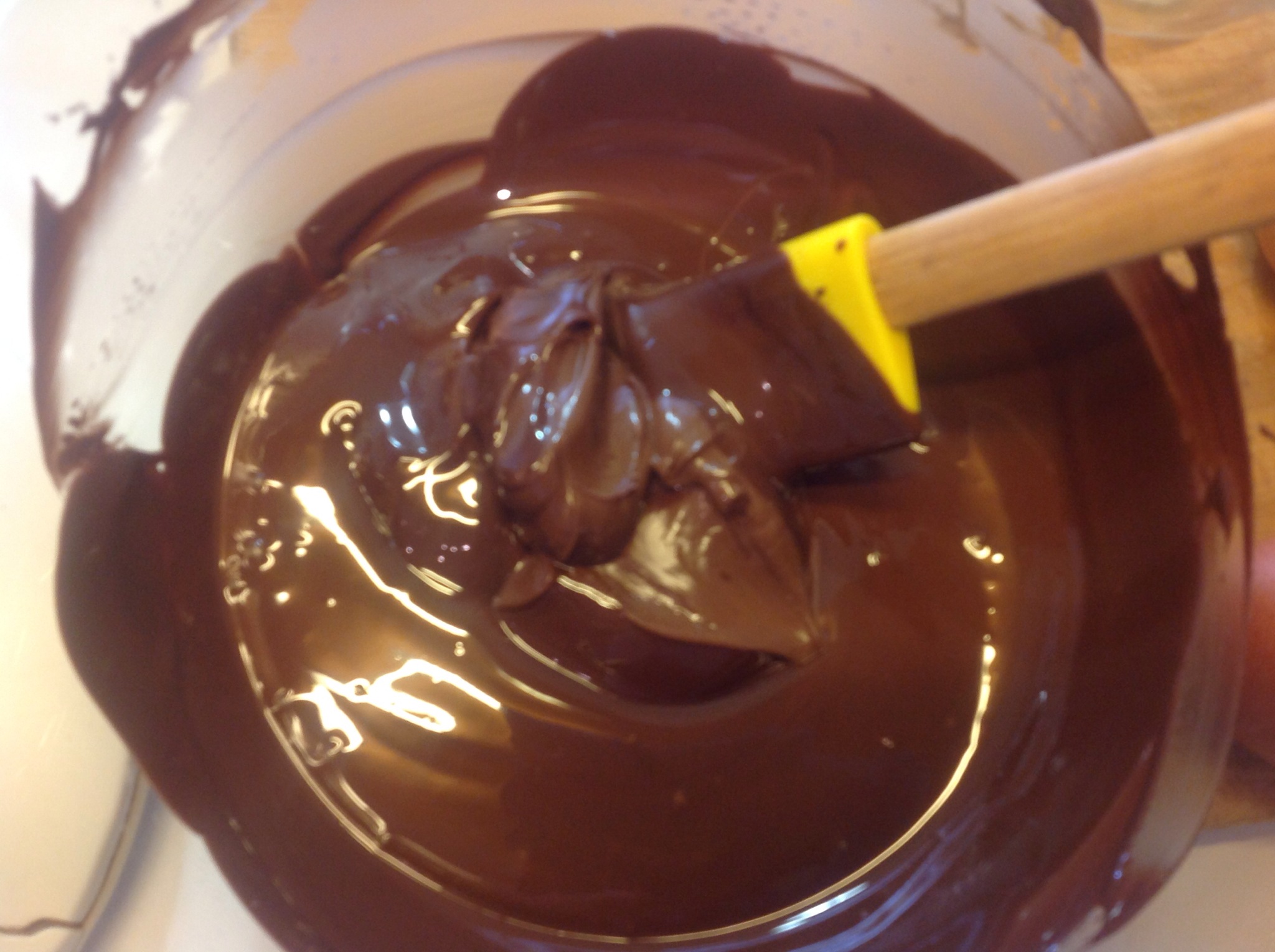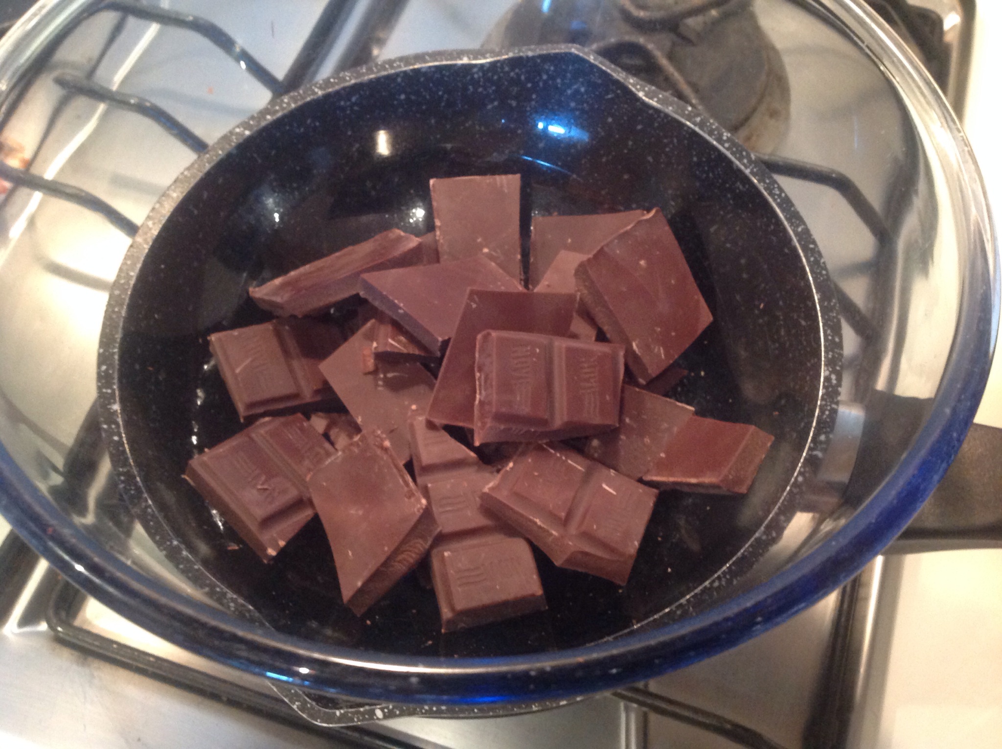 Lo sciolgo dolcemente a bagnomaria cioè appoggiando la ciotola sopra un pentolino di acqua che sobbolle, continuando a mescolare