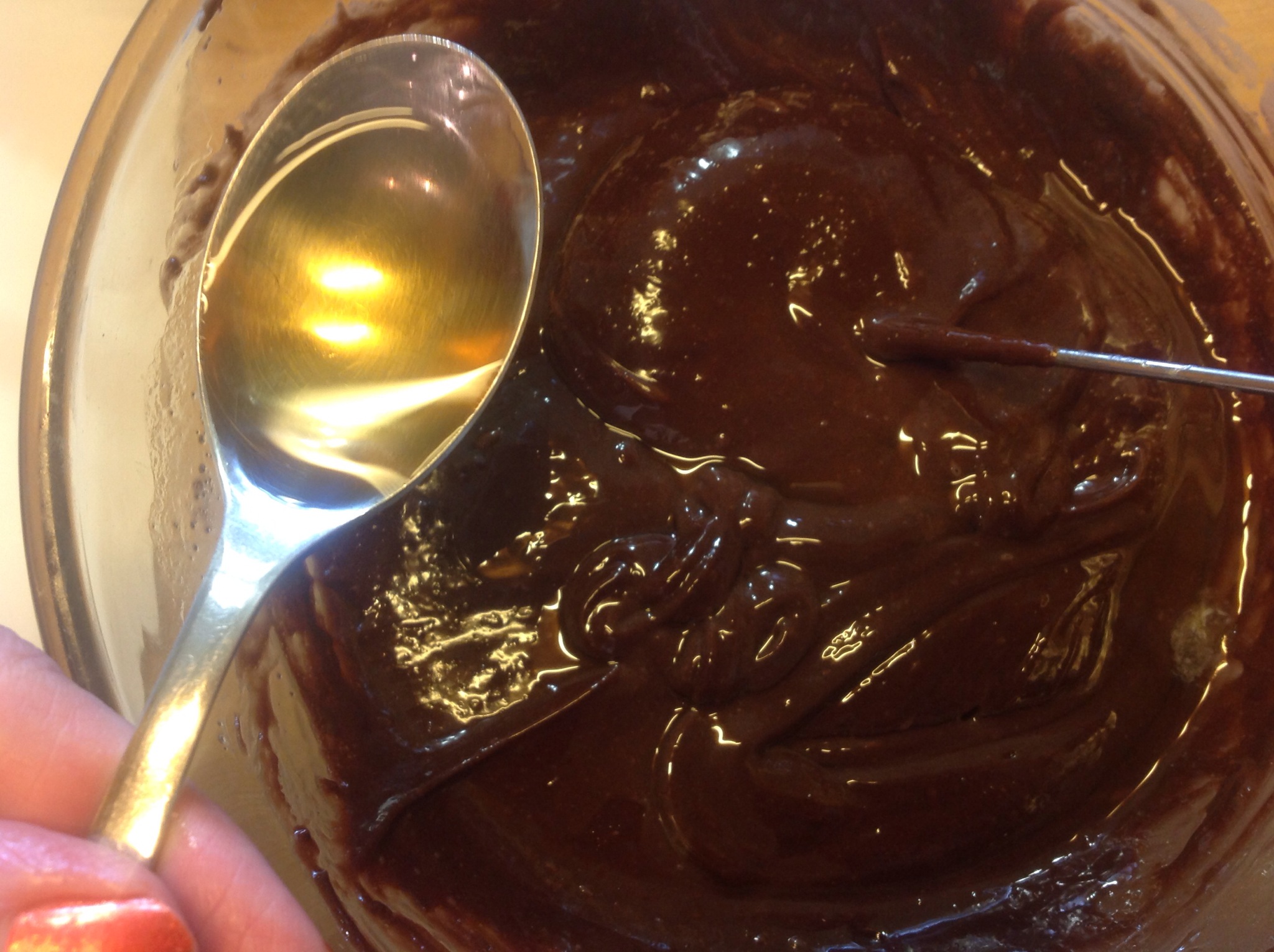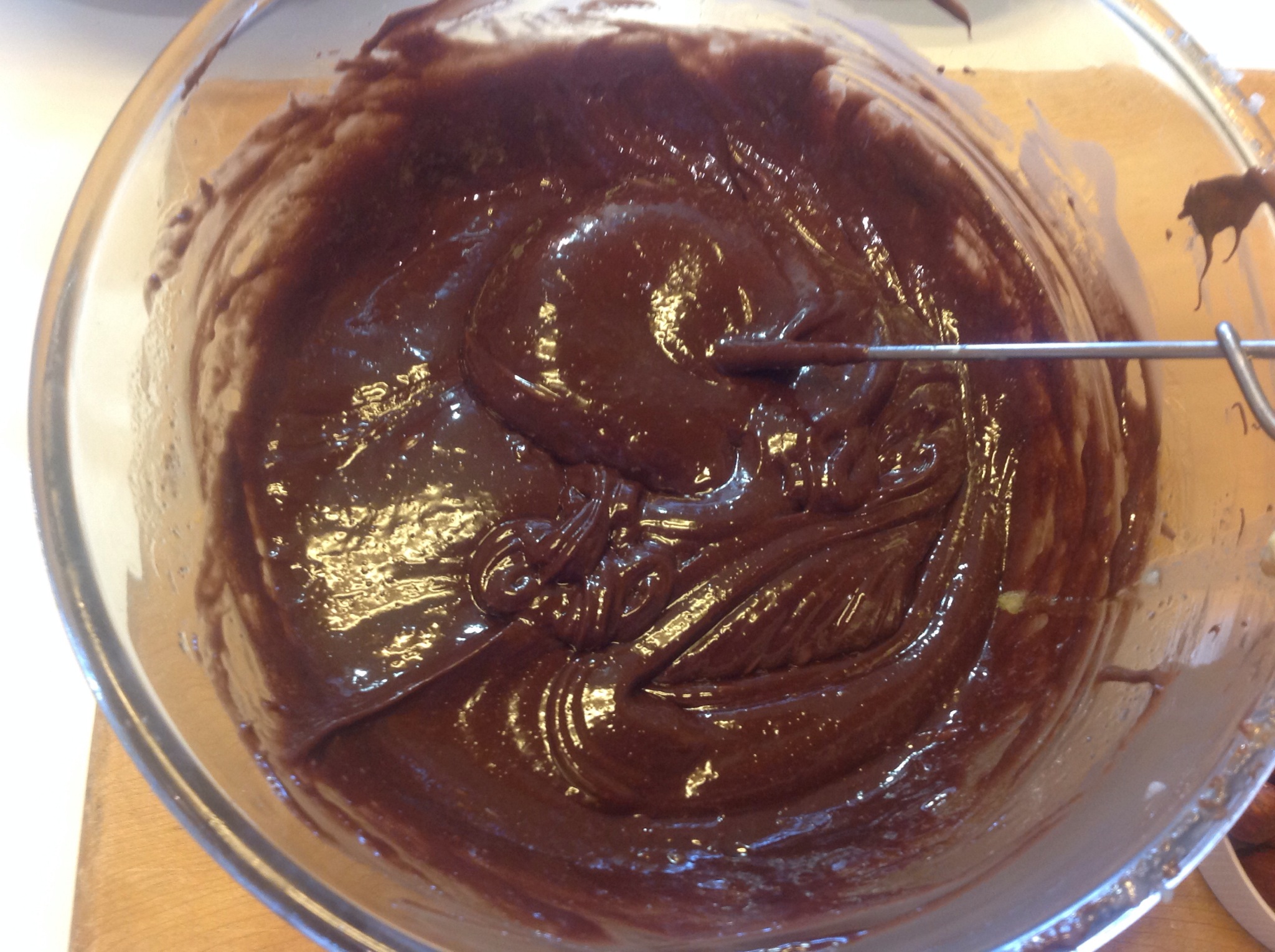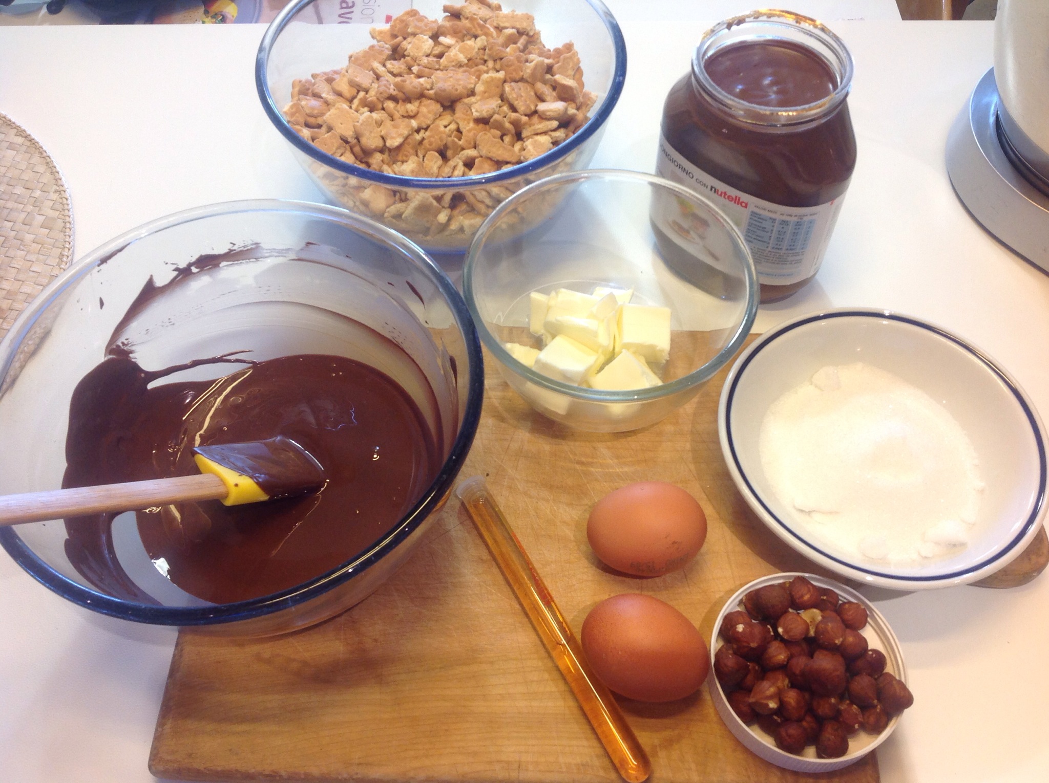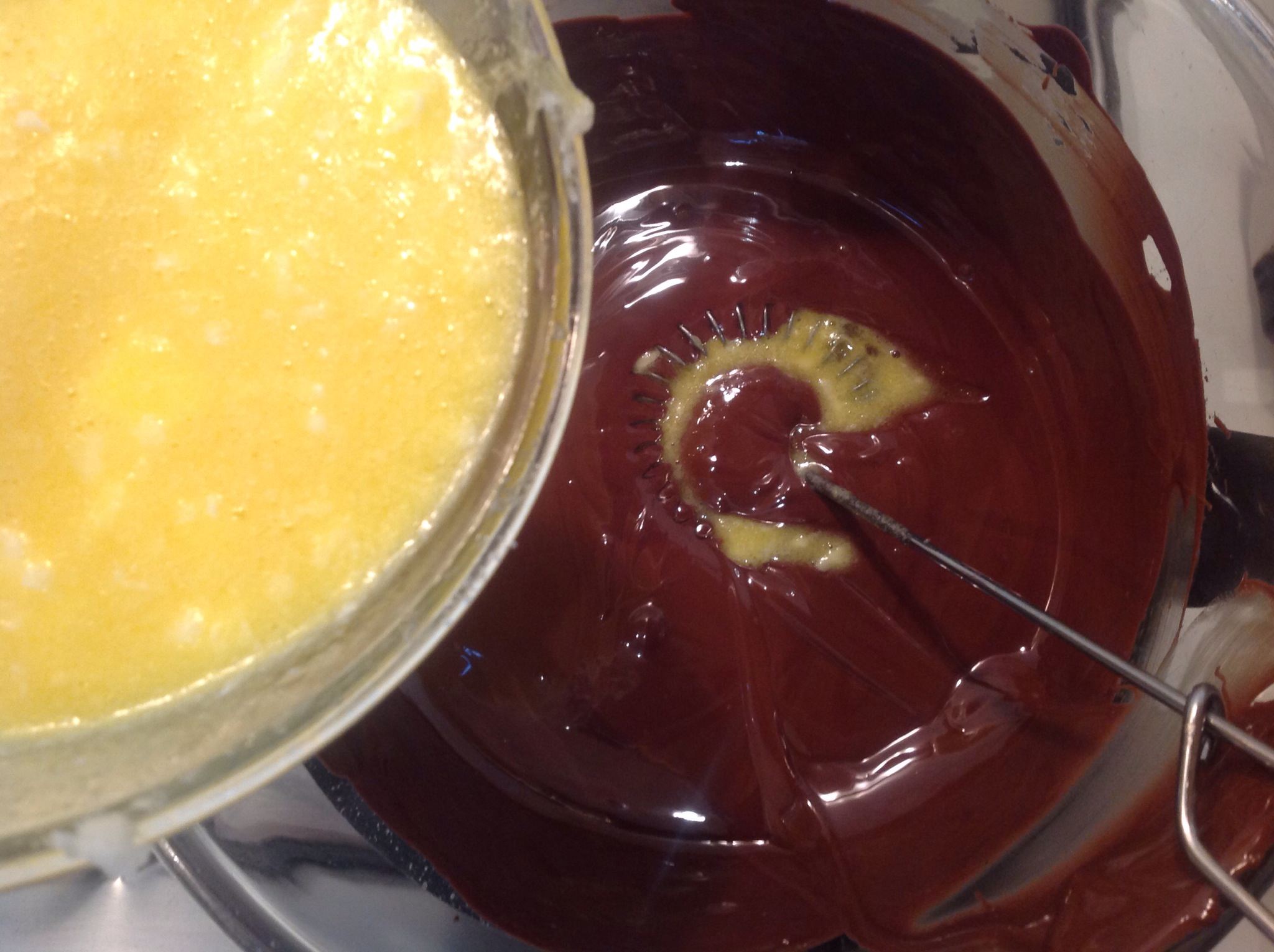 Quando è liscio, lo tolgo dal bagnomaria e sempre mescolando aggiungo la Nutella