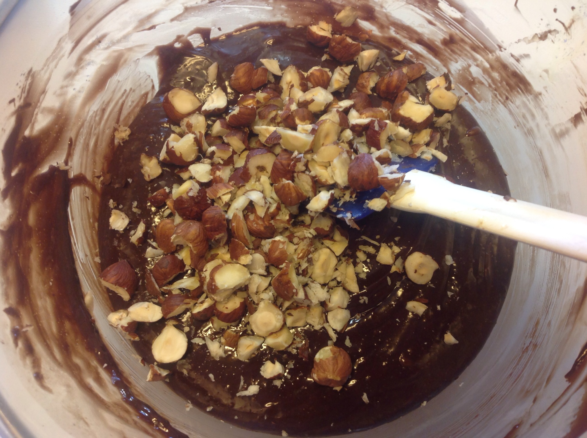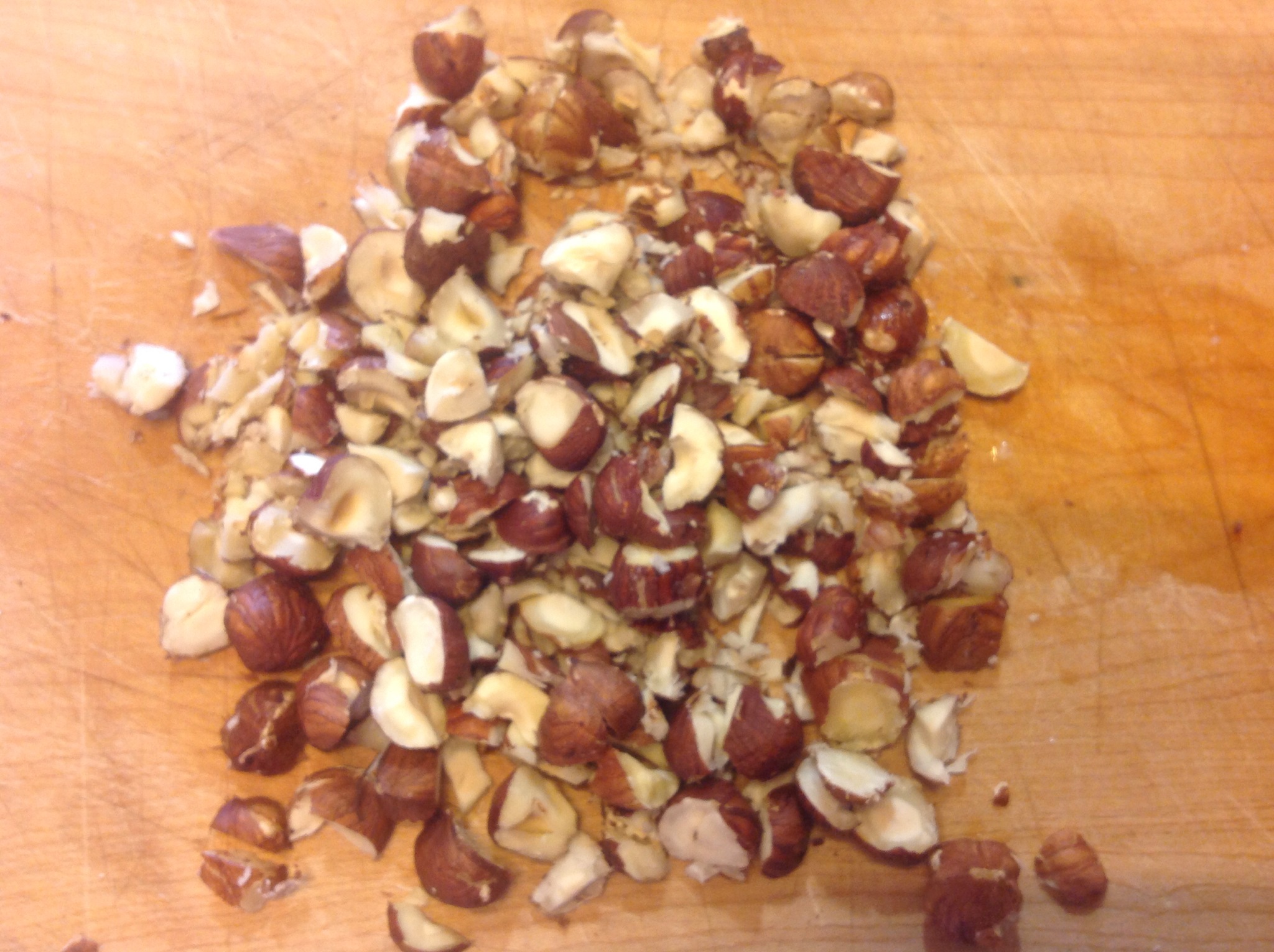 Trito a coltello le nocciole lasciandole a pezzi piuttosto grossi