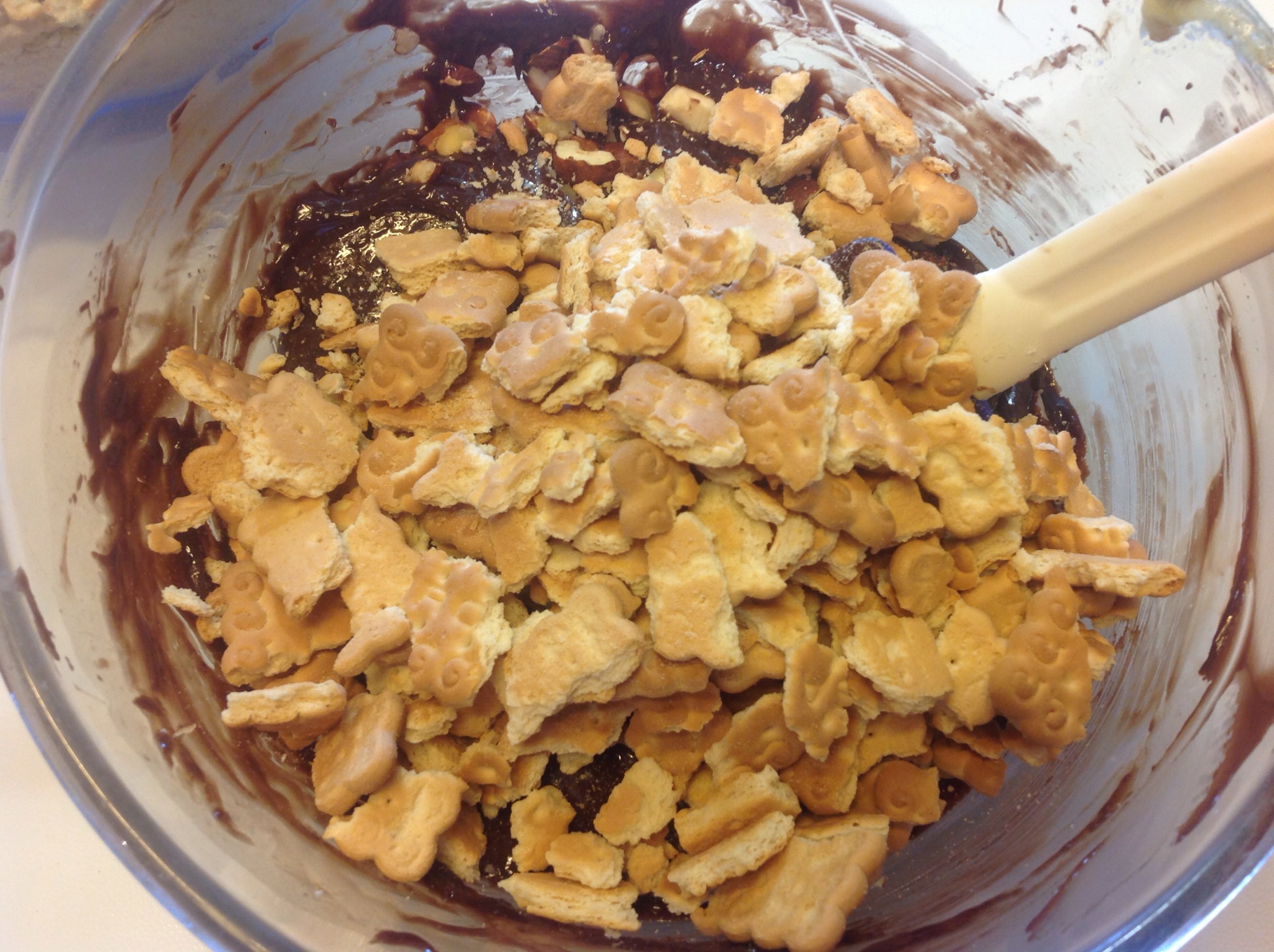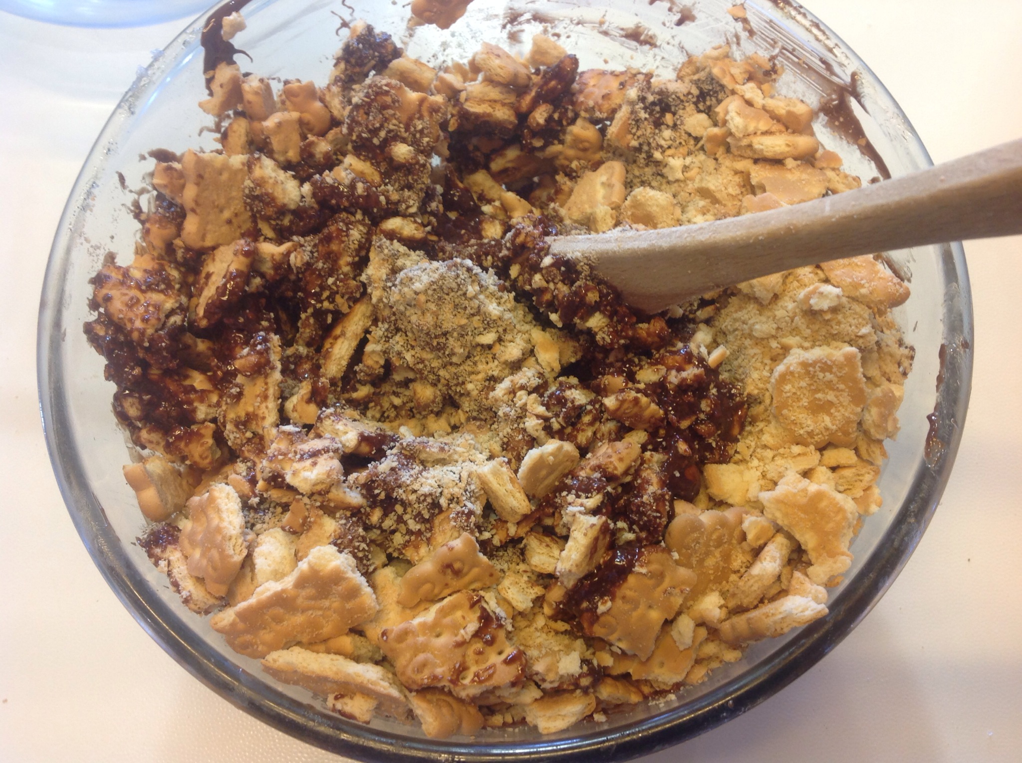 Aggiungo anche i biscotti che ho sbriciolato grossolanamente