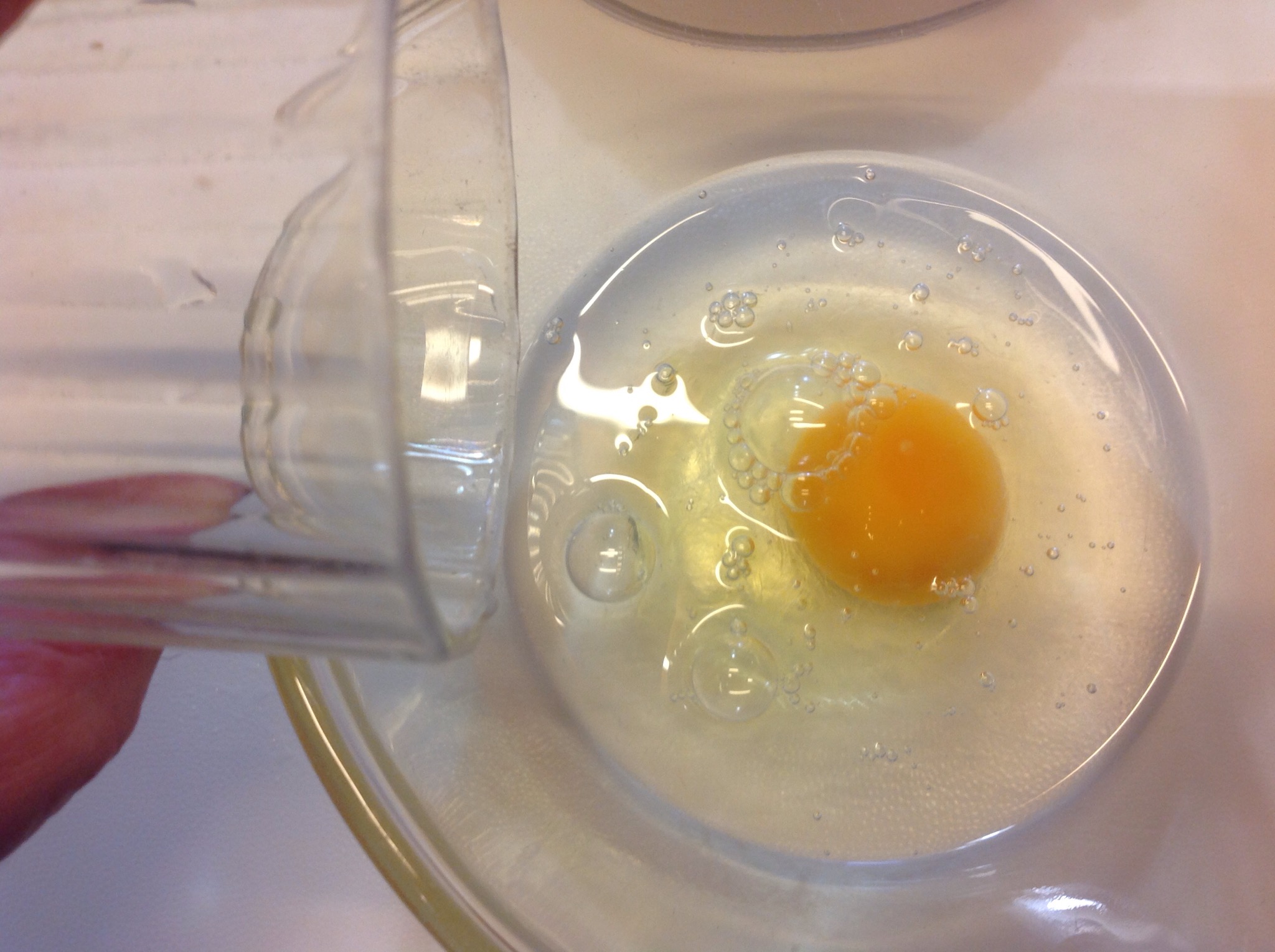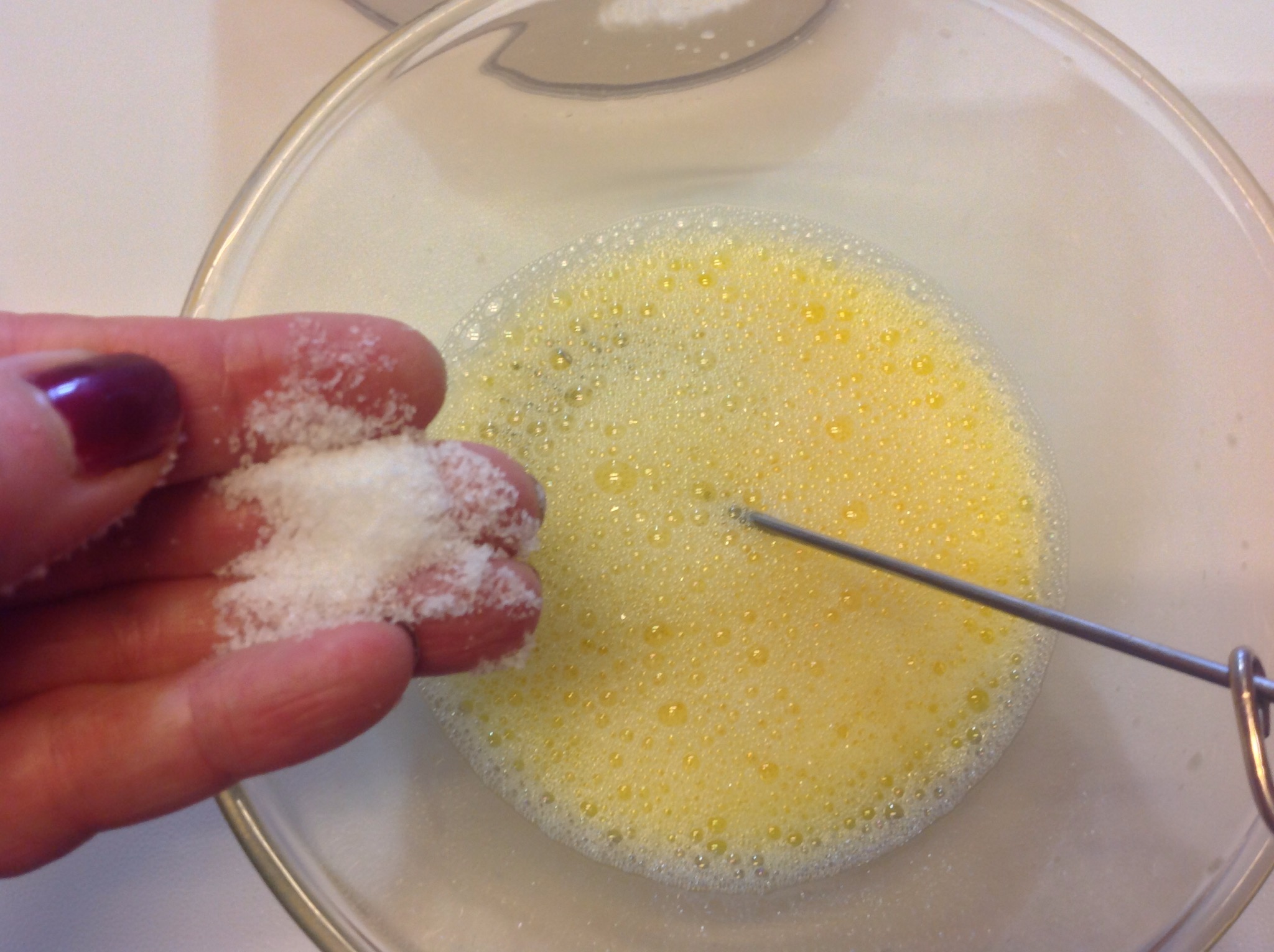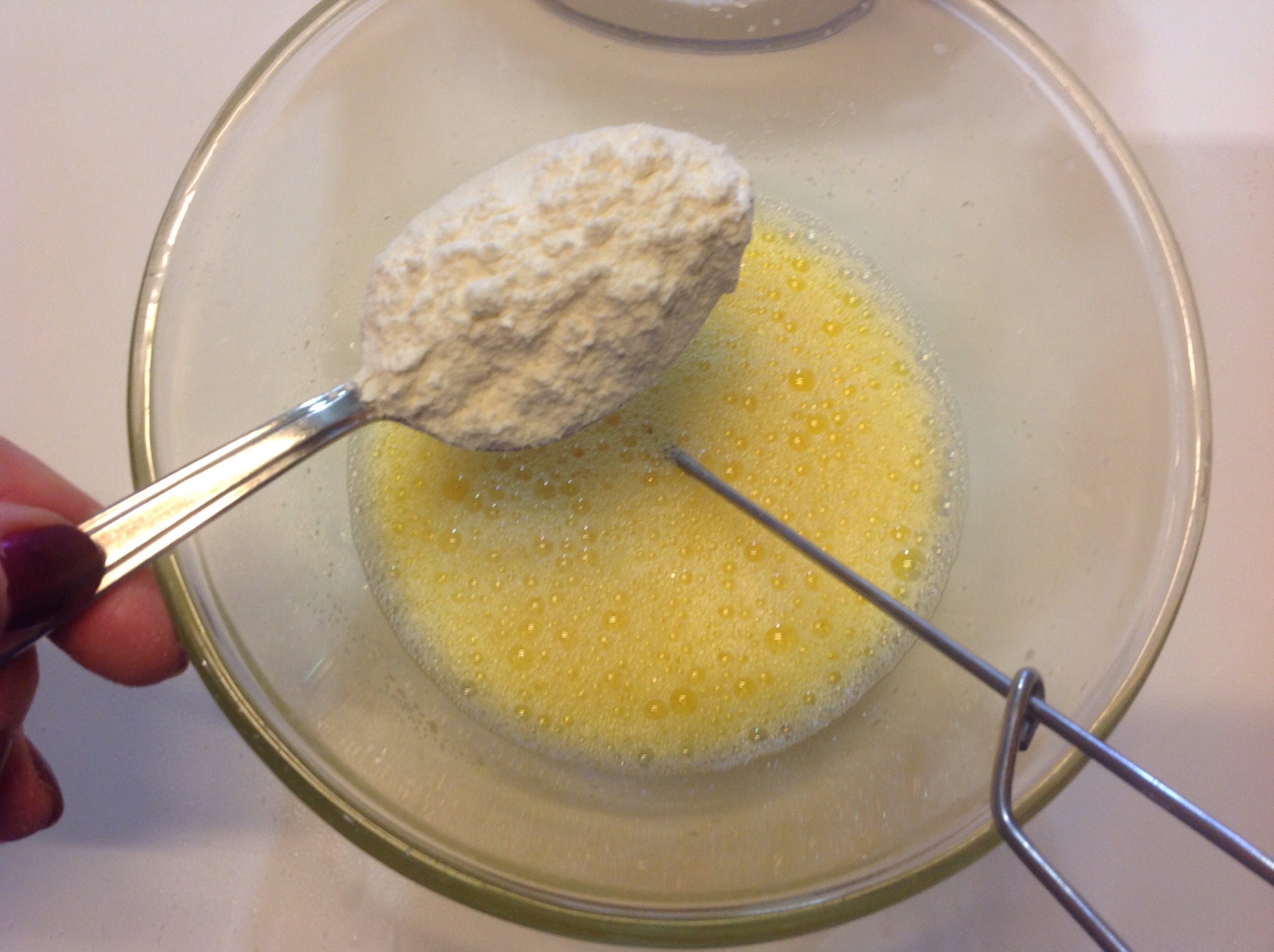 In una ciotola rompo l’uovo e aggiungo il bicchiere di acqua lavorando con una frustina