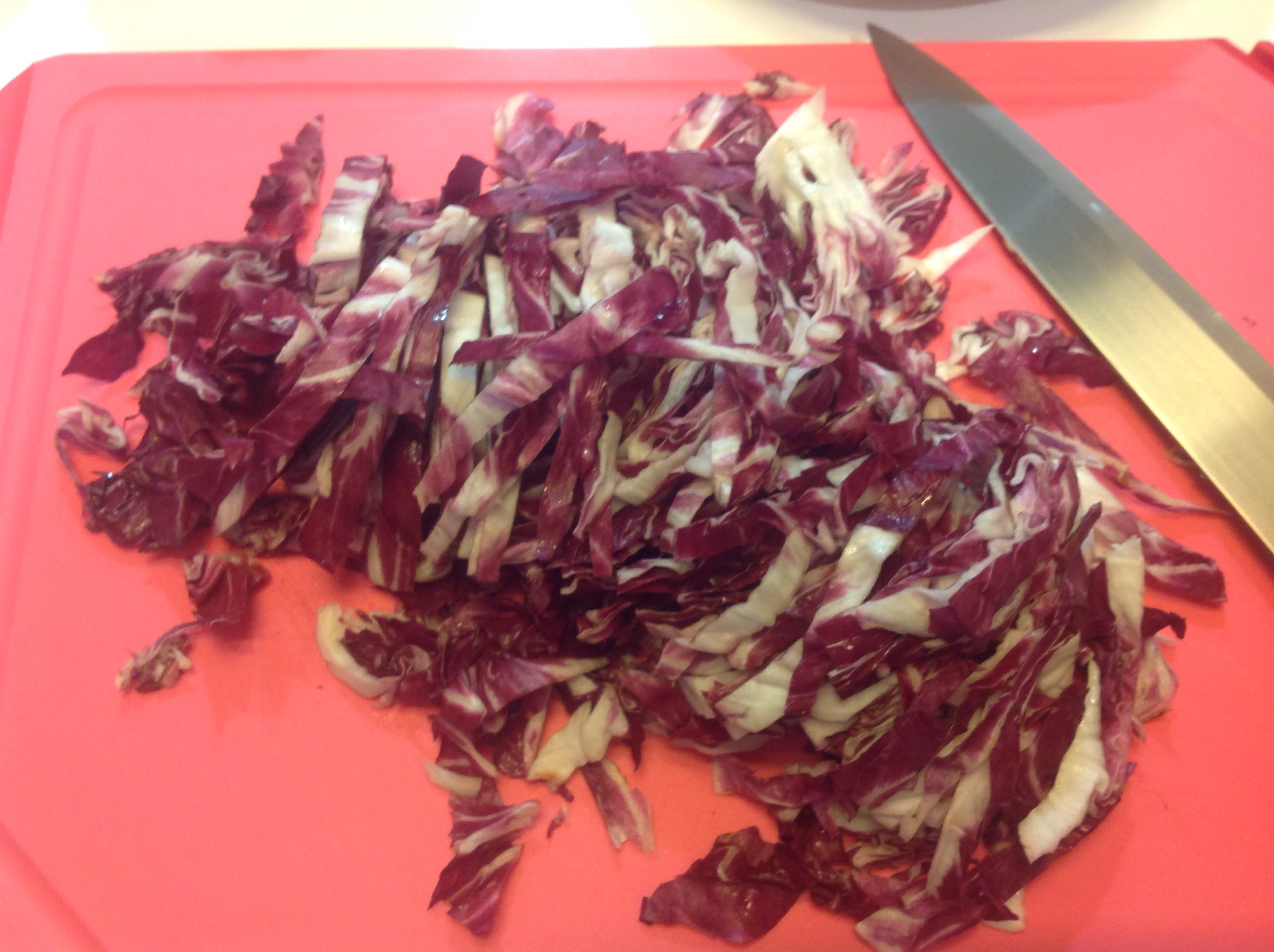 Taglio a striscioline il radicchio e lo lavo