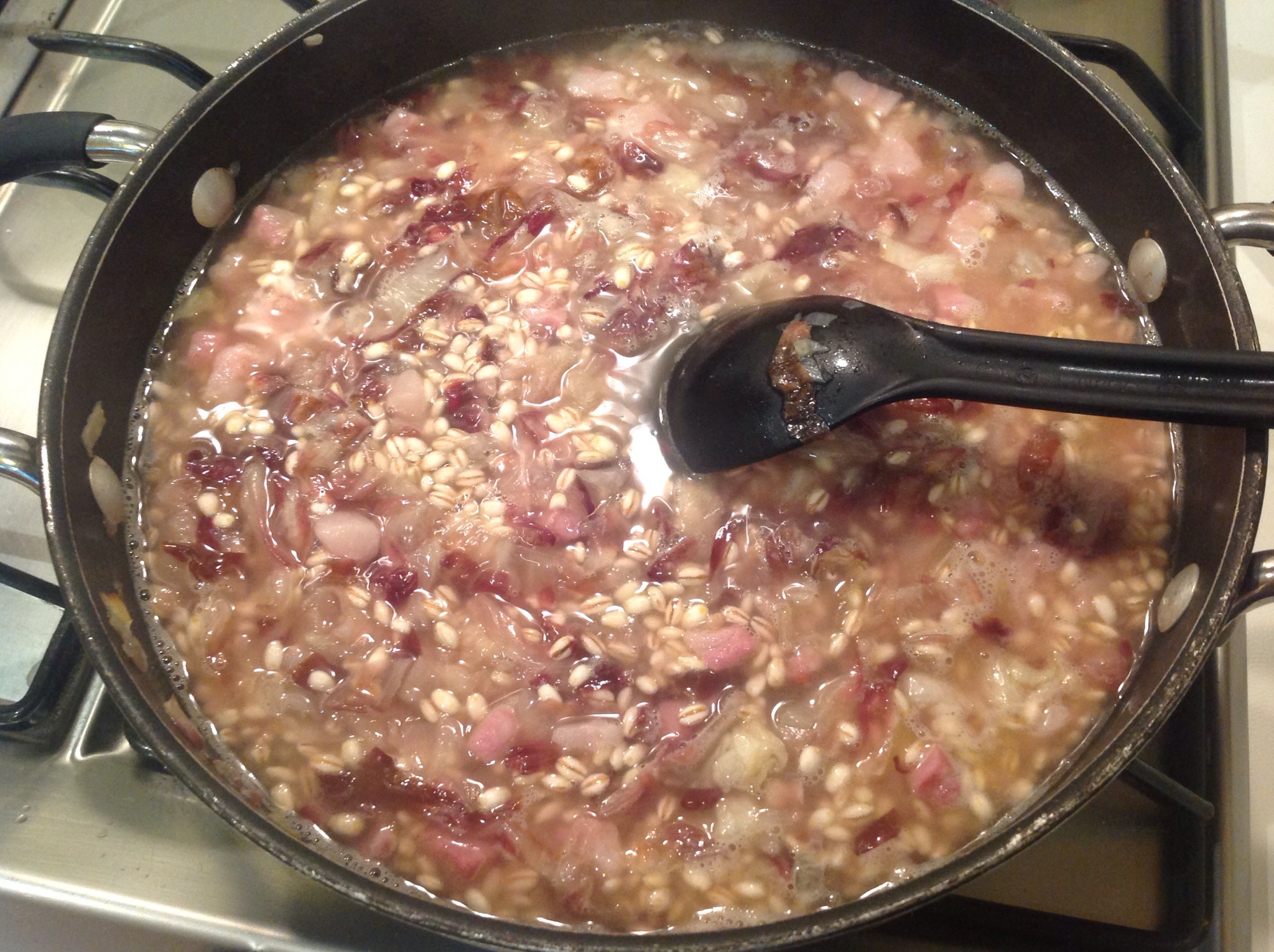 Porto a cottura, il tempo dipende dall’orzo che adoperate, leggete sulla confezione, ci vorranno circa 20 minuti