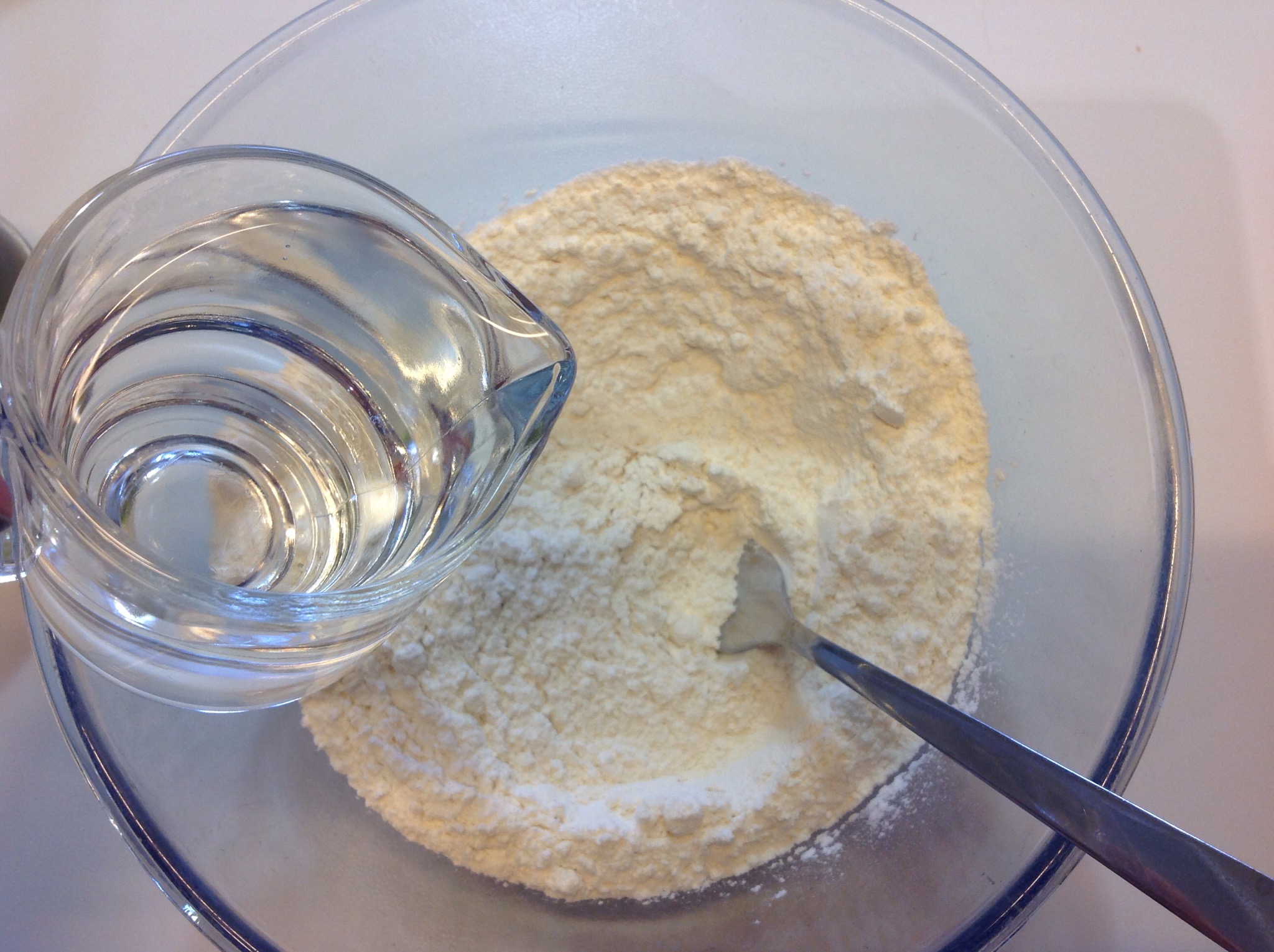 Aggiungo poca per volta l’acqua mescolando con una forchetta