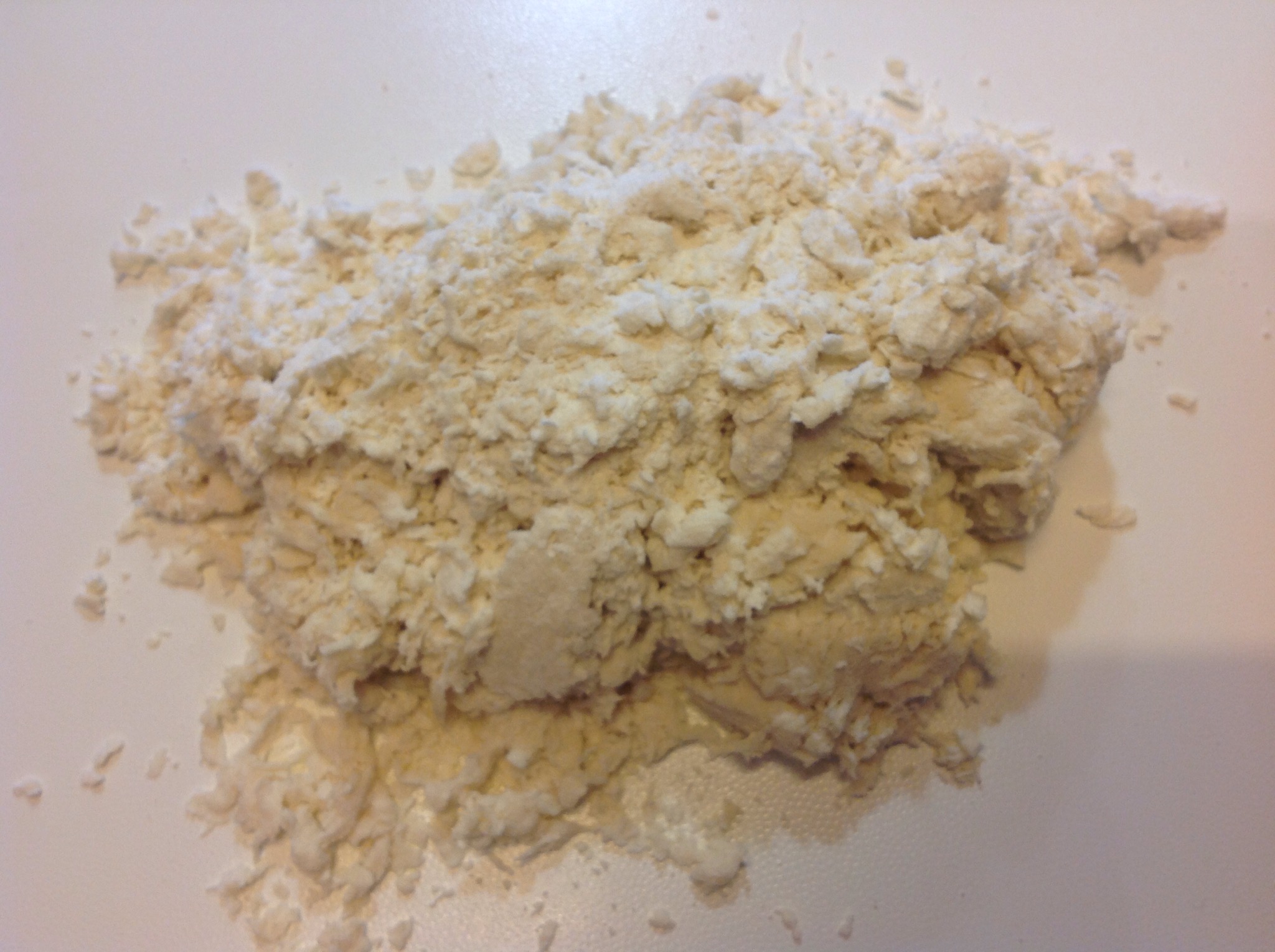 Trasferisco l’impasto sbriciolato sul piano di lavoro