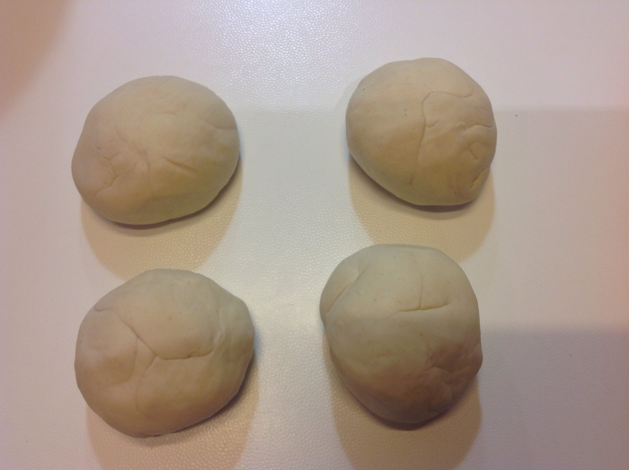 Infarino leggermente la spianatoia, prendo un panetto, lo schiaccio e lo allargo con il palmo della mano facendolo roteare dando una forma rotonda, se volete potete utilizzare il matterello ma la pasta è morbida e non serve, stendo fino ad avere uno spessore di 2/3 mm
