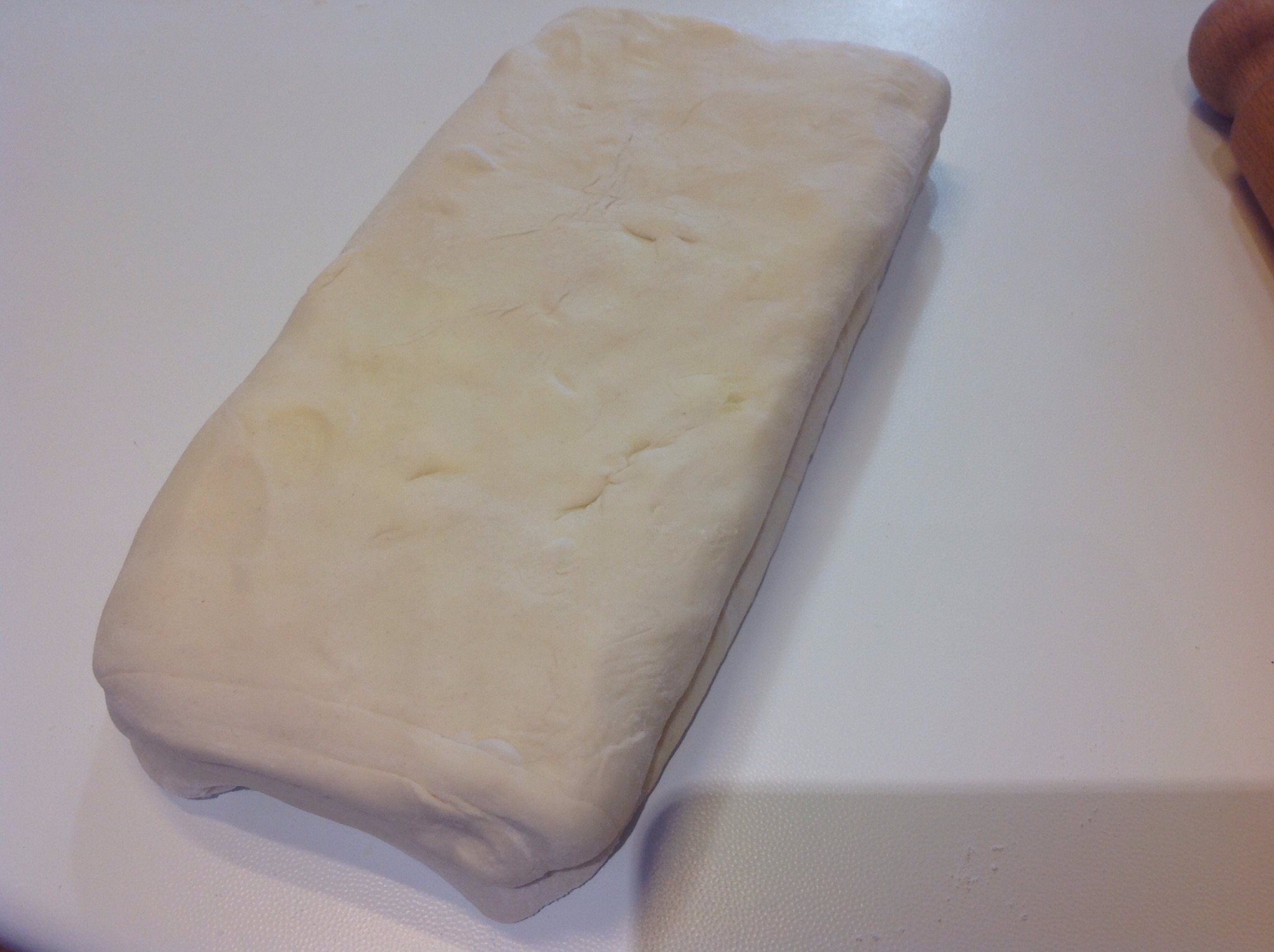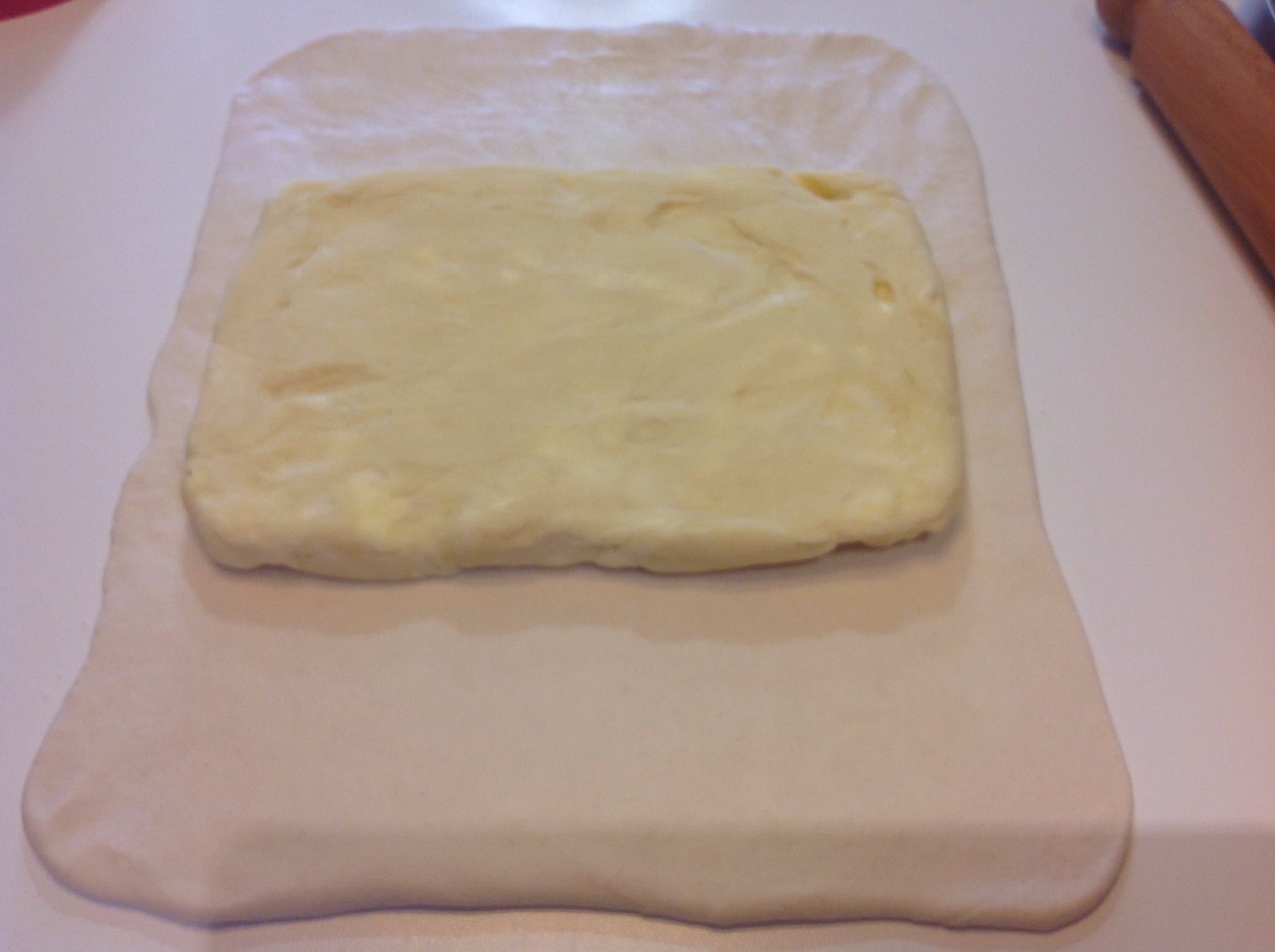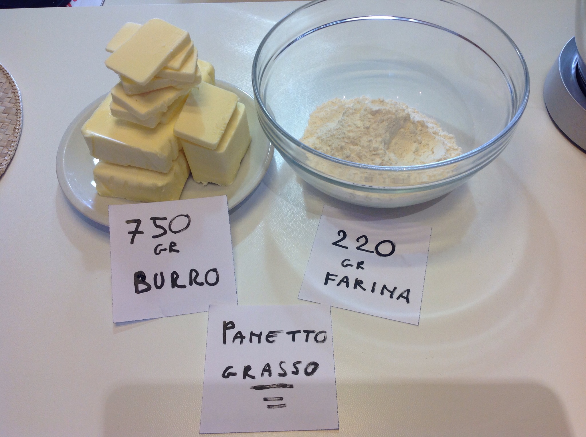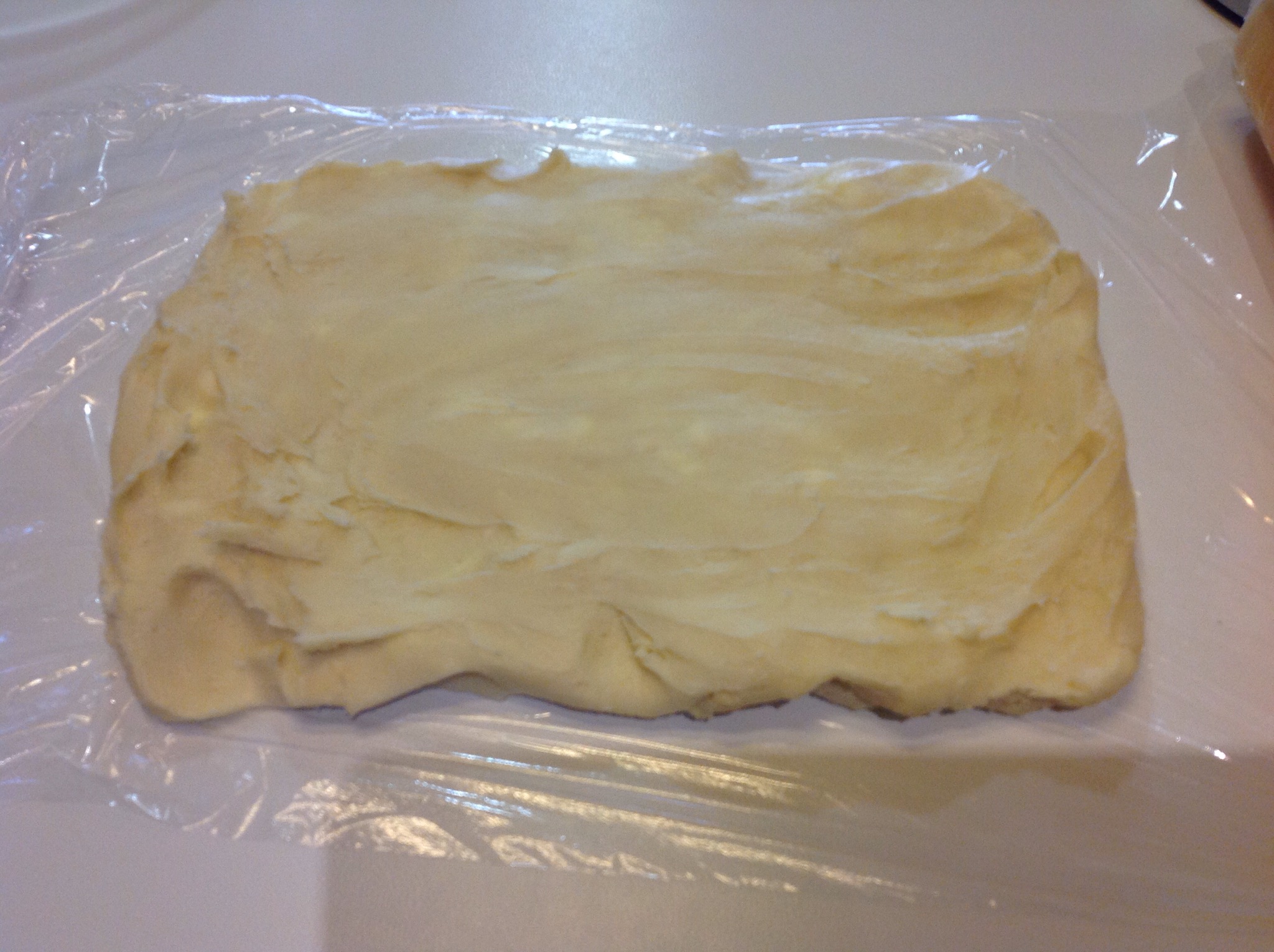 Giro il panetto in verticale, il lato aperto deve essere di fronte a noi e le due estremità devono essere chiuse per evitare che il burro esca nella stesura