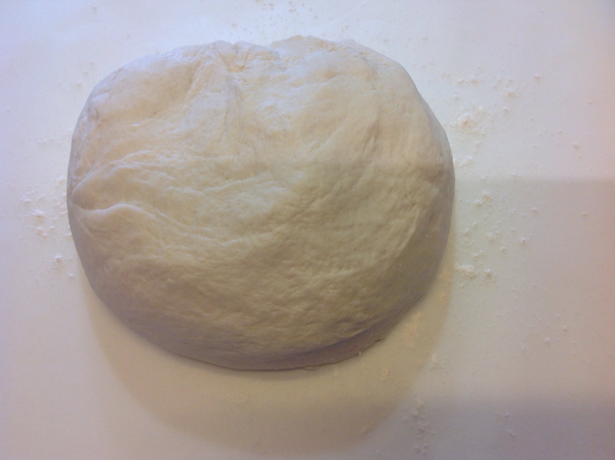 Tolgo dall’impastatrice, lo lavoro un attimo sul piano di lavoro e formo un panetto