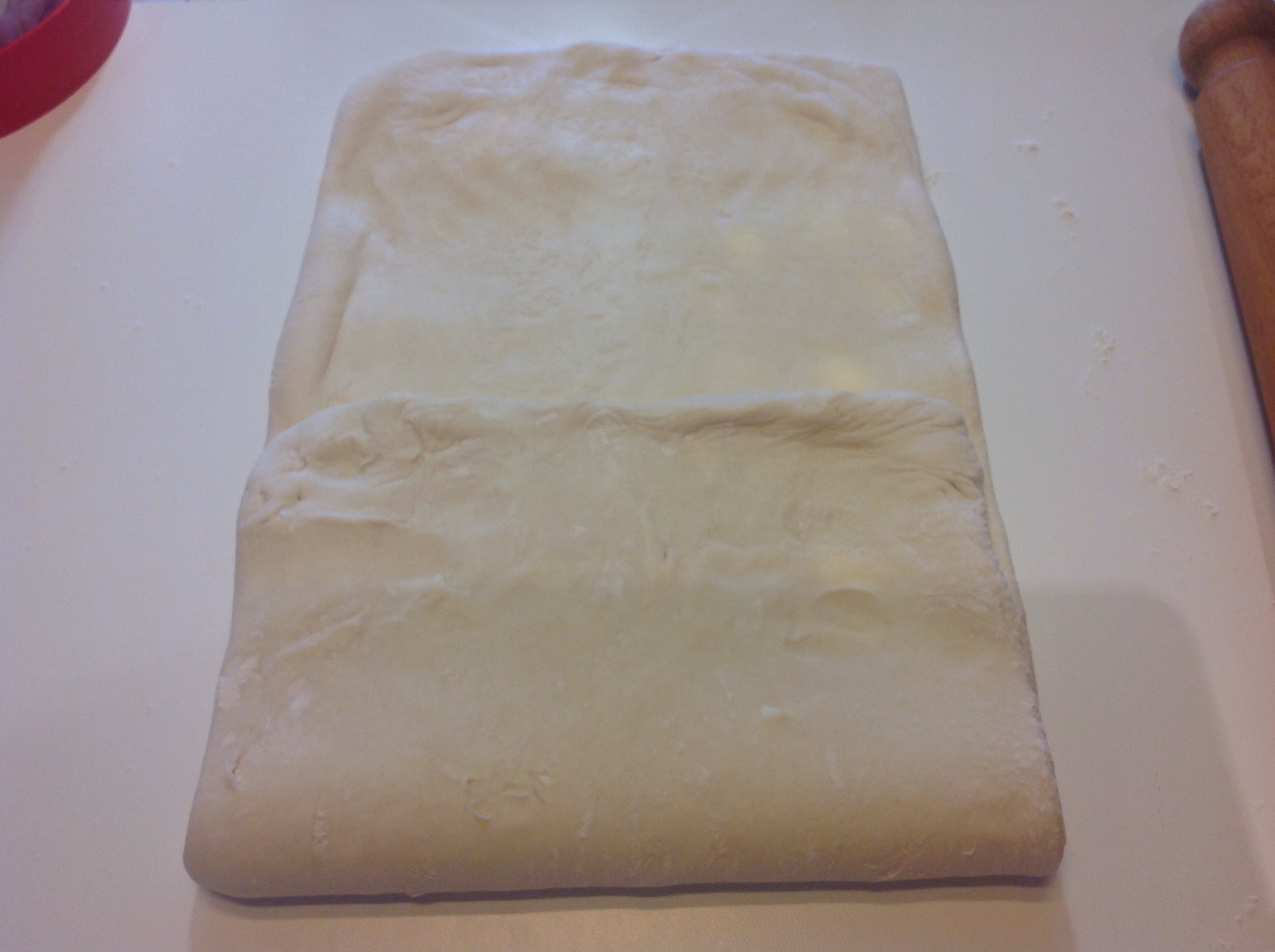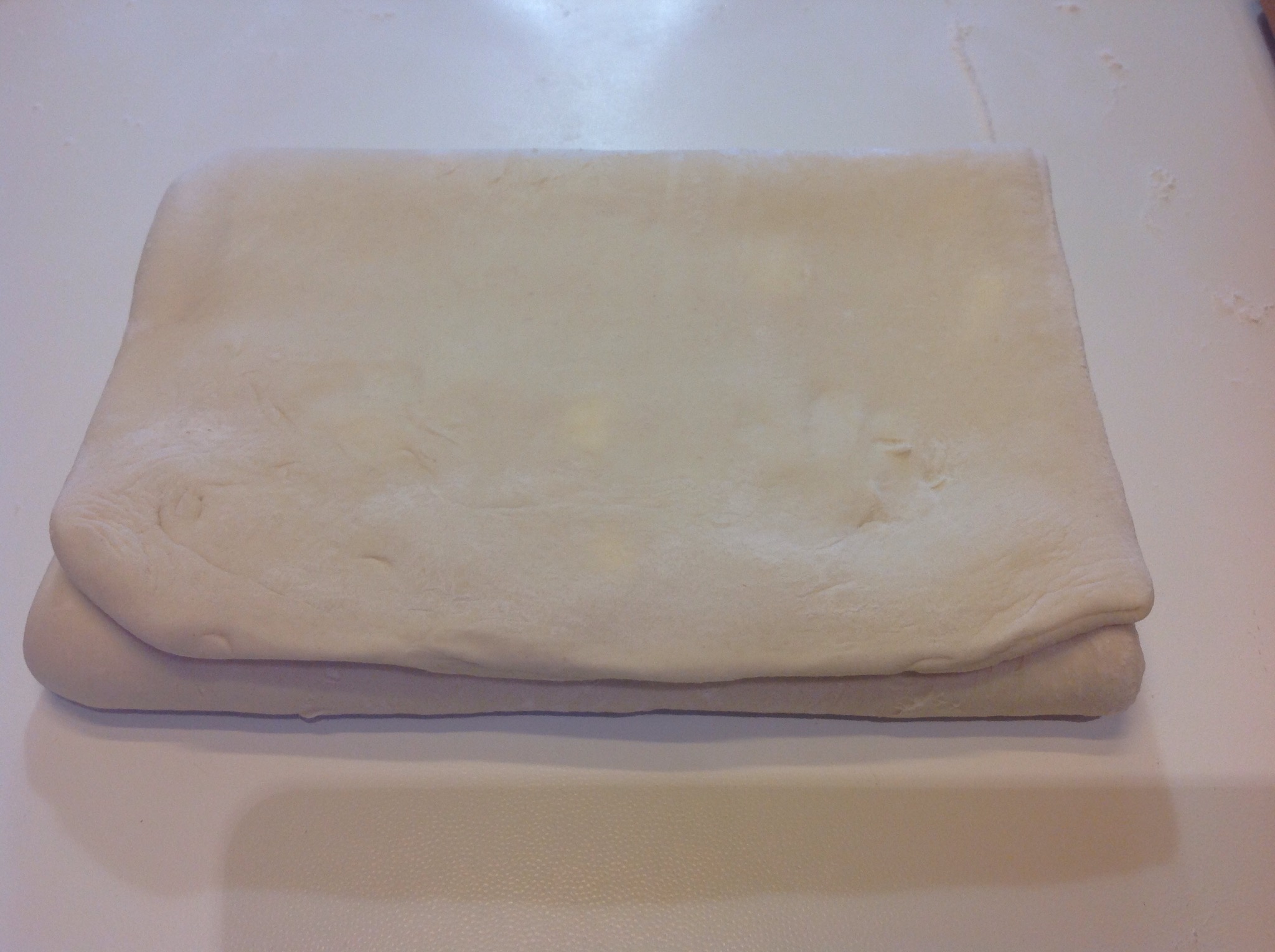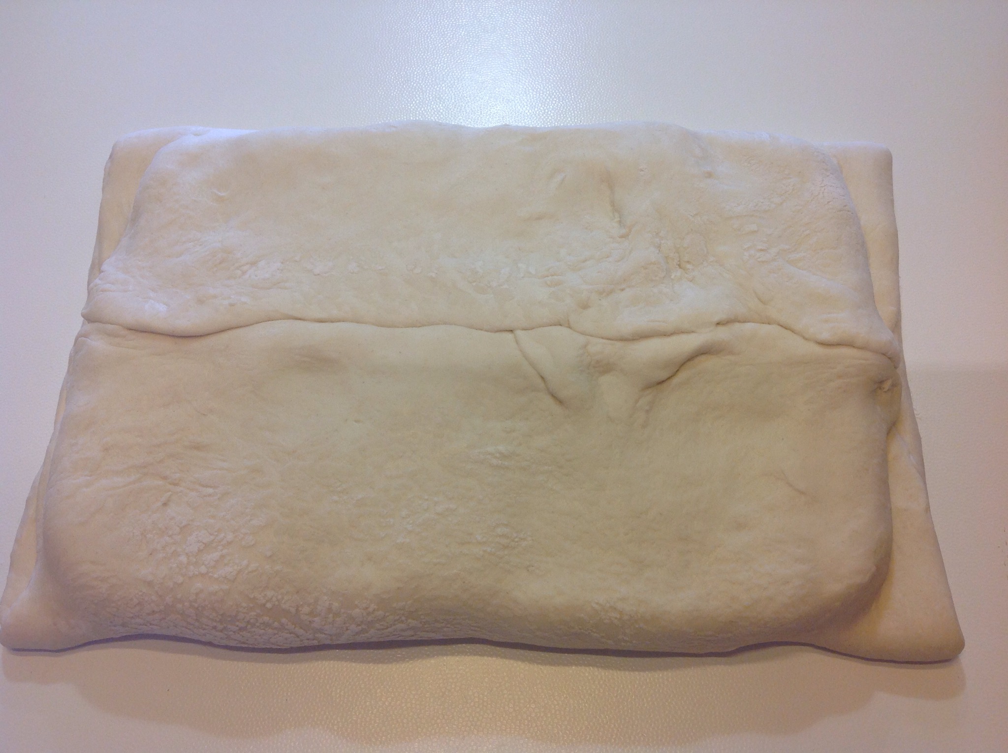 Giro la pasta in orizzontale e piego una piccola parte di pasta del lato destro verso l’interno