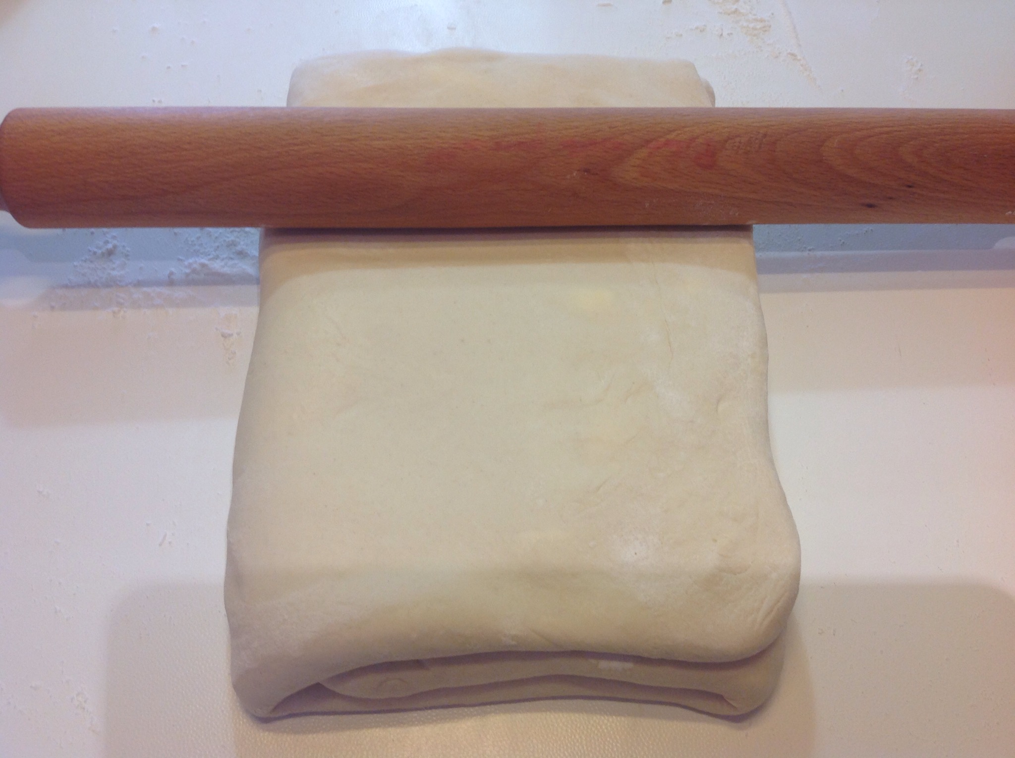 Con il matterello inizio delicatamente a stendere la pasta facendo attenzione a non romperla, il burro non deve mai uscire