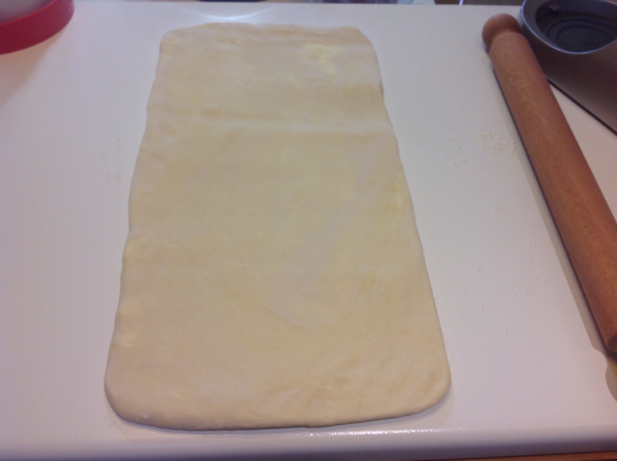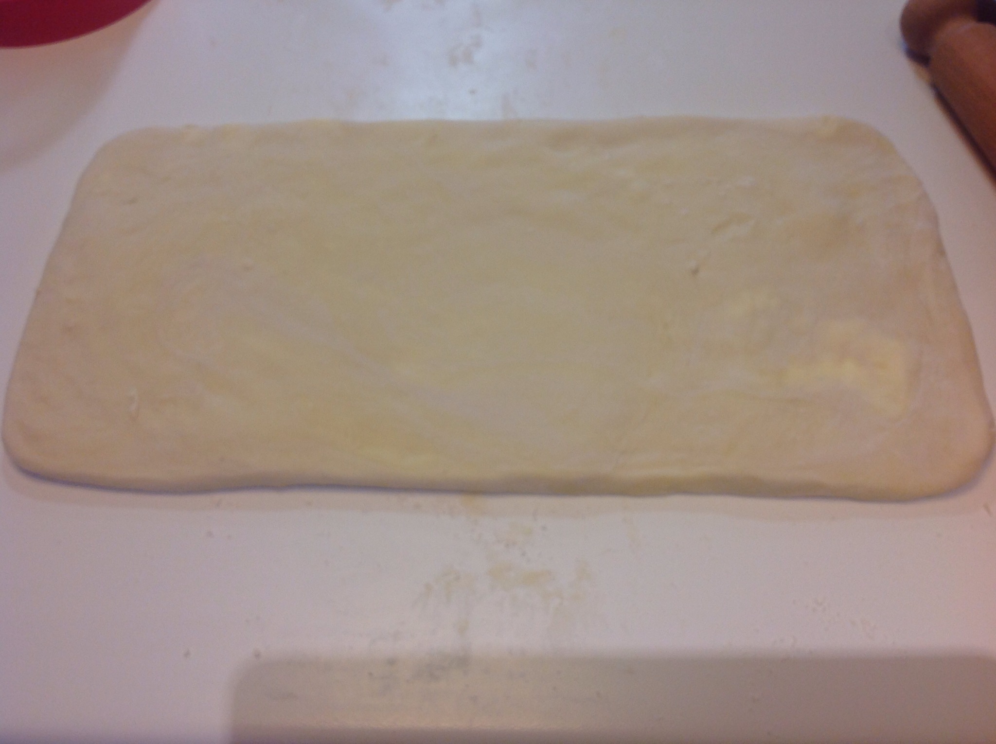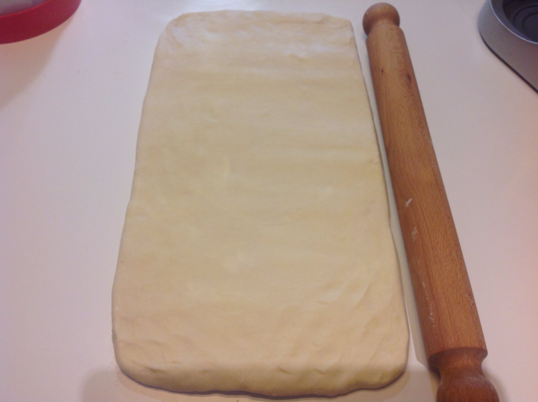 Stendo con un matterello il PASTELLO MAGRO che ho tolto dal frigorifero e lo stendo dando una forma rettangolare leggermente più larga e lunga il doppio del panetto grasso