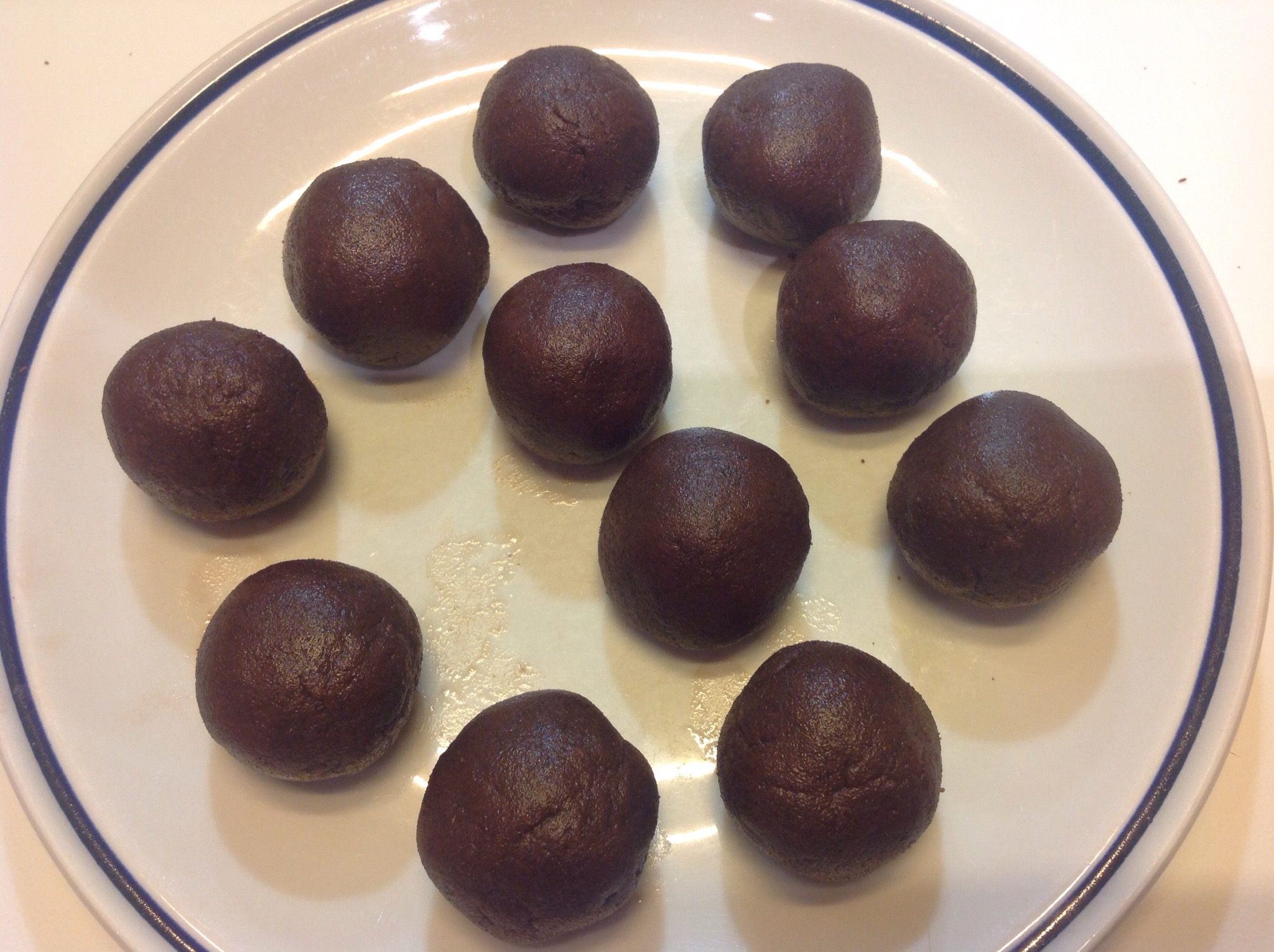 Prendo delle piccole porzioni di impasto e lo lavoro con le mani formando tante palline grandi come una noce, tenetele piccole perché con la glassa e la granella altrimenti diventano troppo grandi e pesanti