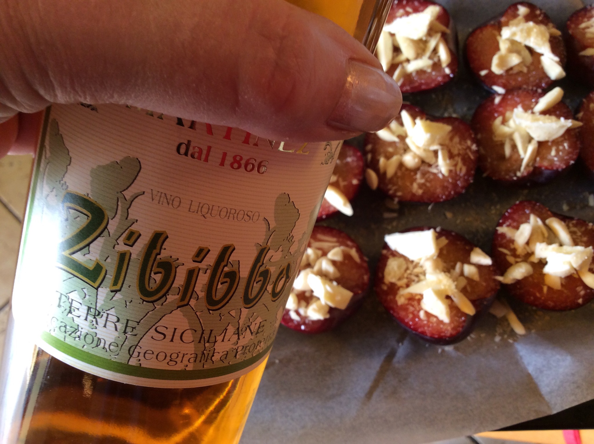 Ho spruzzato le prugne con lo Zibibbo, un buonissimo vino liquoroso siciliano, potete optare anche per un marsala, a voi la scelta
