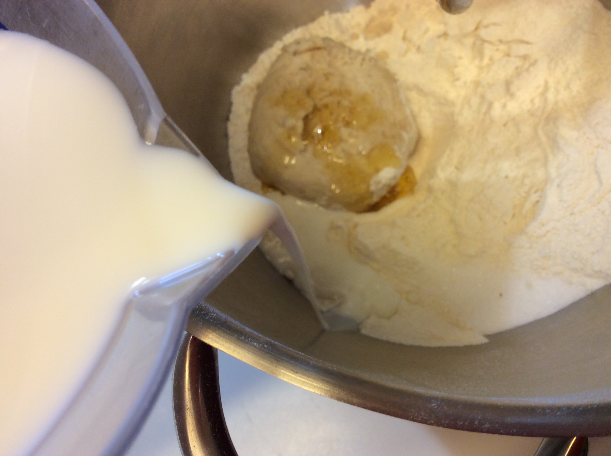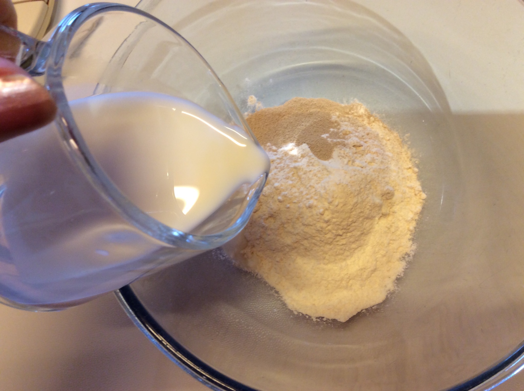 Mescolo 100 gr di farina della dose con i 3,5 gr di lievito o il lievito che avete scelto e unisco 50 gr di latte della dose a temperatura ambiente