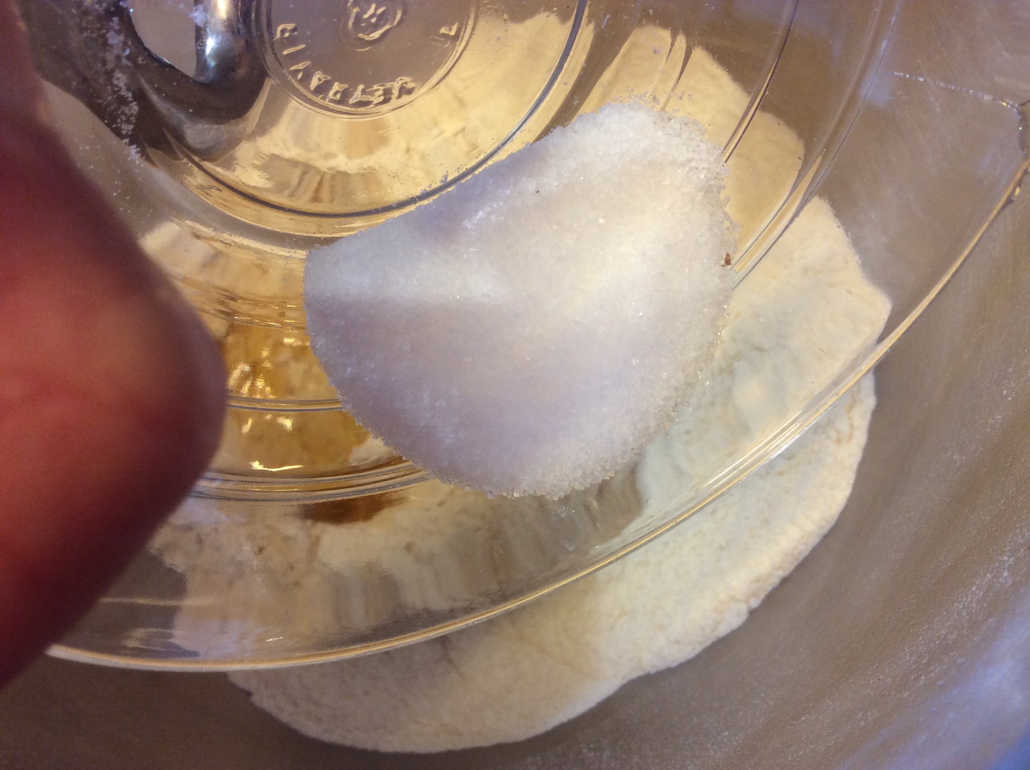 Impasto a mano e formo un panetto, lo metto in una ciotola coperta con pellicola e lascio lievitare in un luogo tiepido (25 gradi) per 30 minuti
