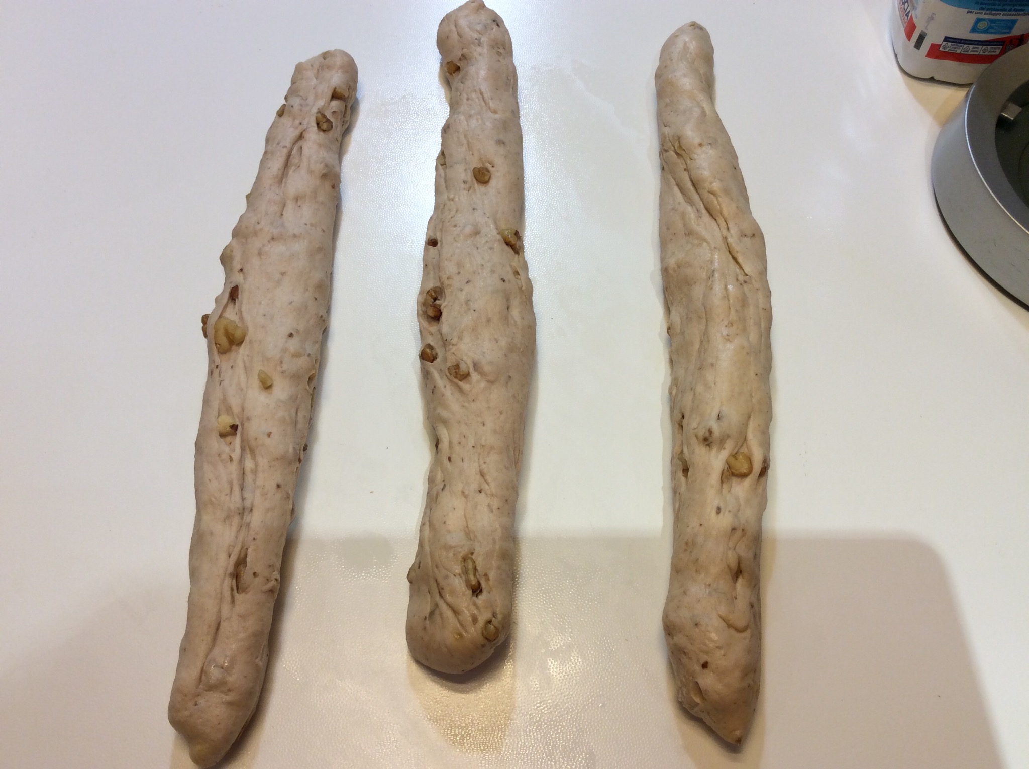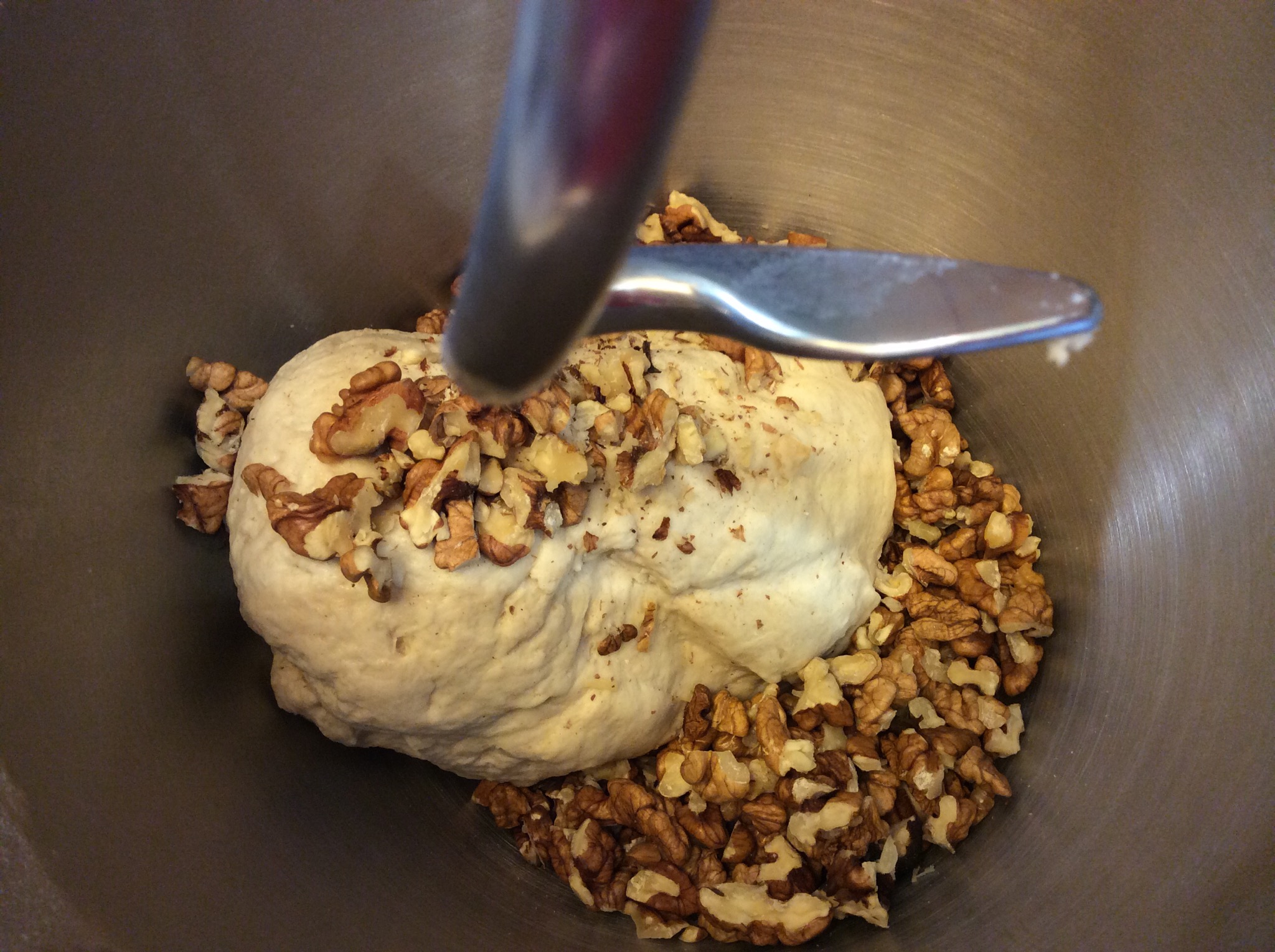 Aziono l’ impastatrice e inizio a lavorare, poco dopo unisco le noci e lavoro ancora