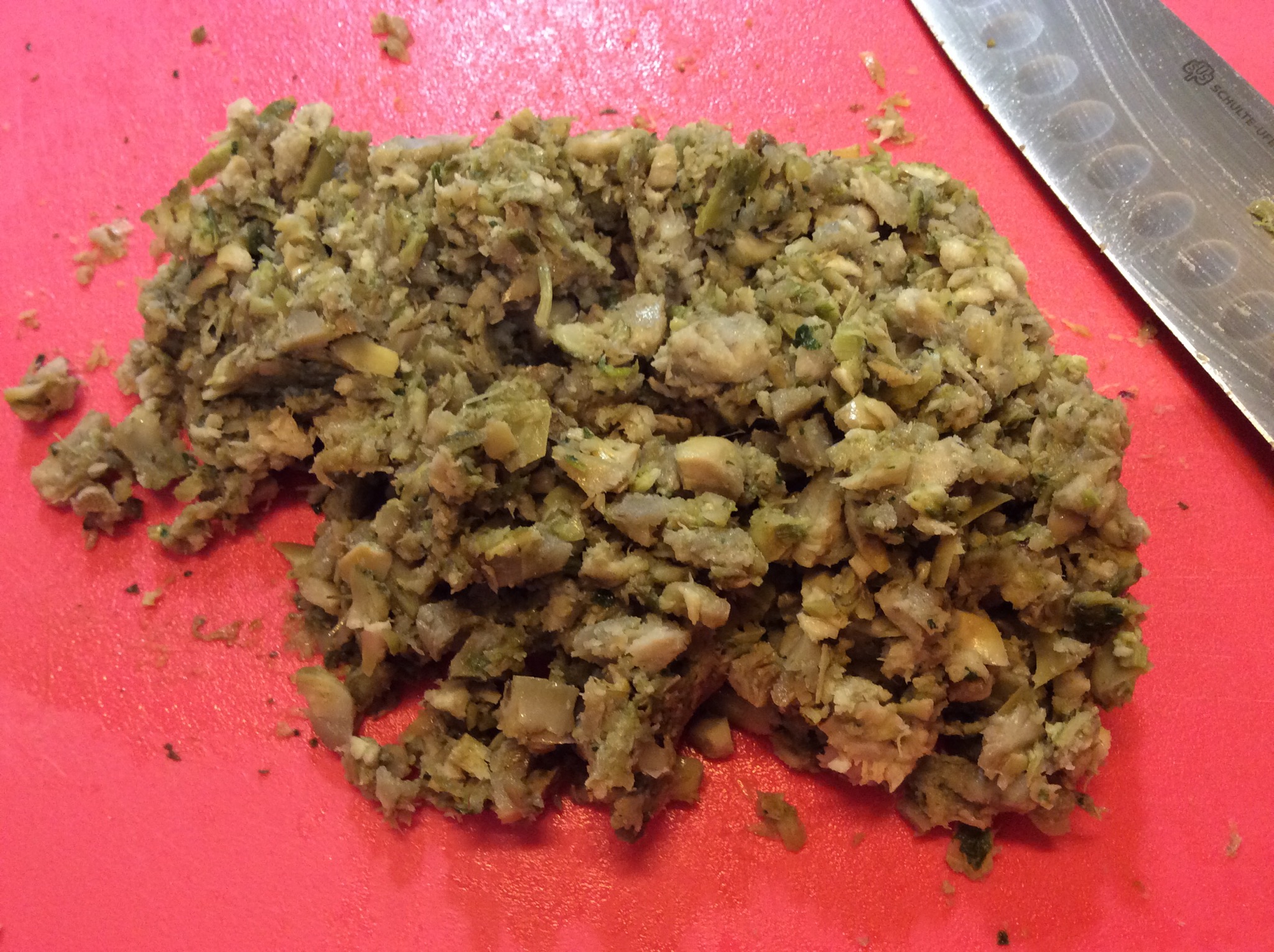 Li lascio raffreddare e li trito finemente a coltello eliminando l’aglio