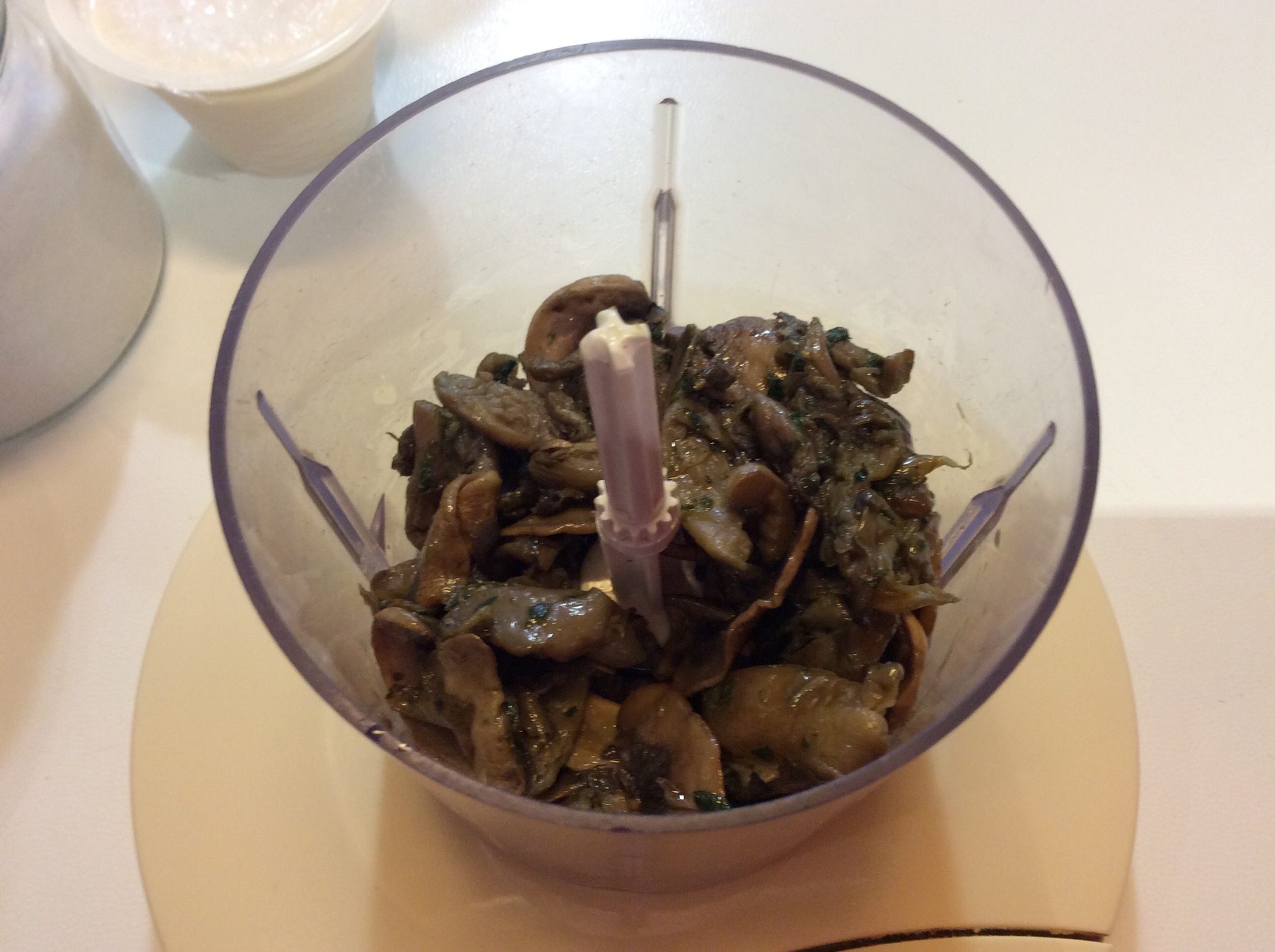 Intanto che le patate cuociono preparo il ripieno, trito i fughi che avevo cotto in padella con un filo di olio, prezzemolo e aglio