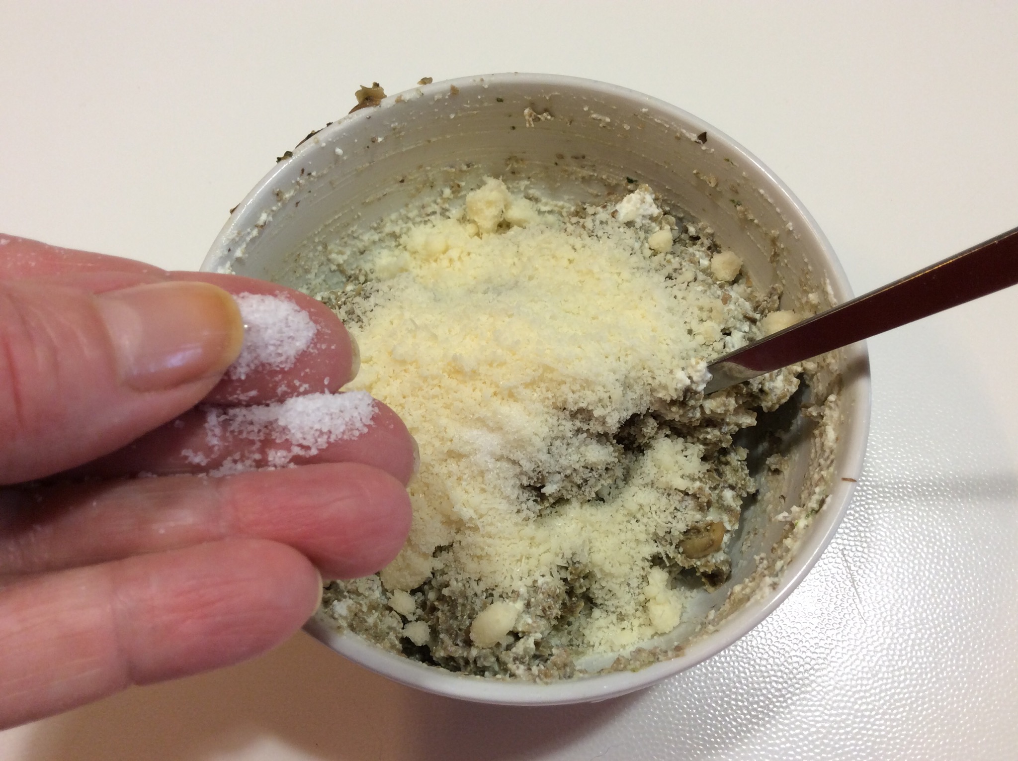 Il parmigiano, un pizzico di sale se serve, deve essere un ripieno piuttosto compatto