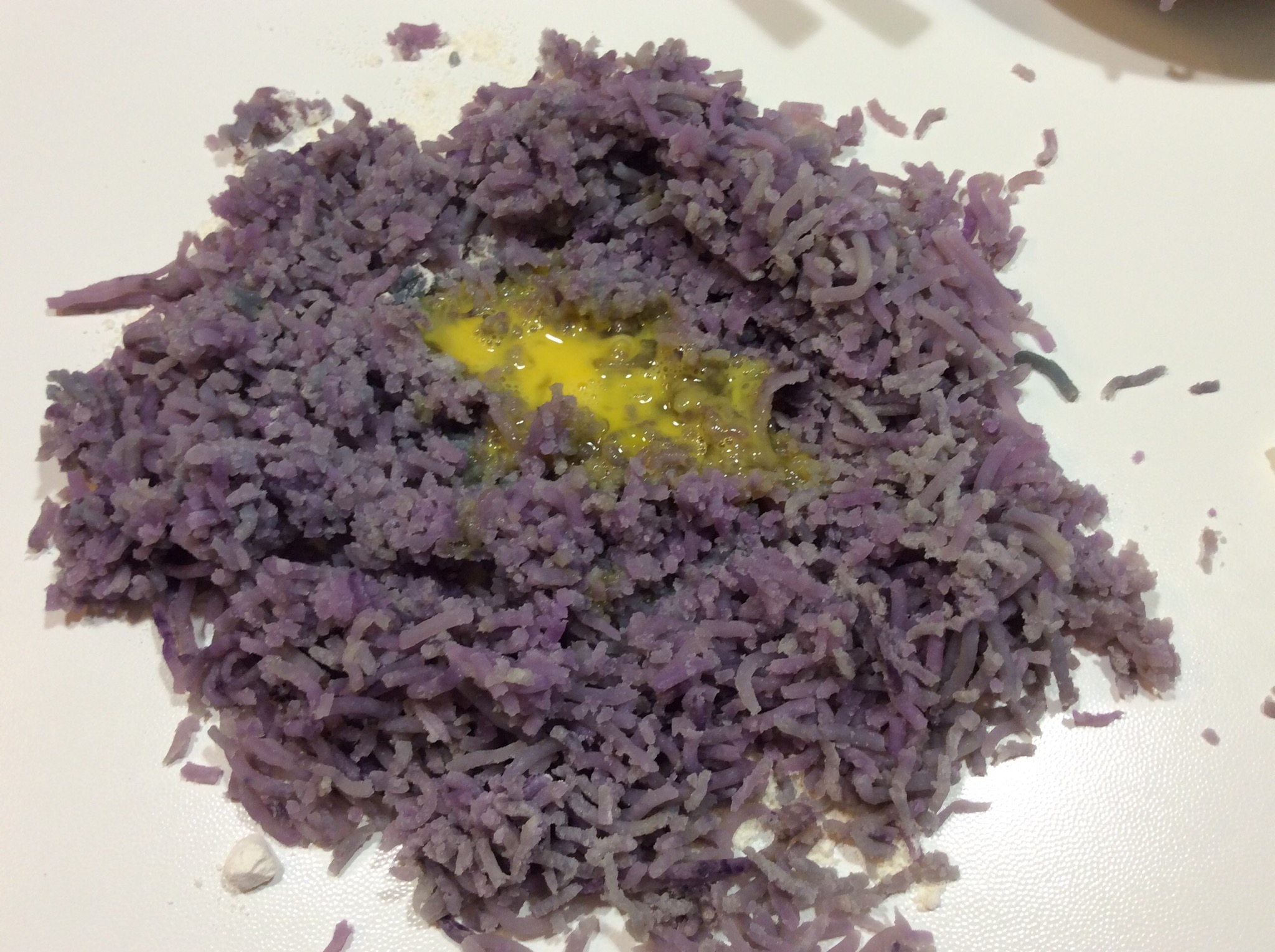 Preparo un incavo al centro e verso la metà di un uovo leggermente battuto con una forchetta