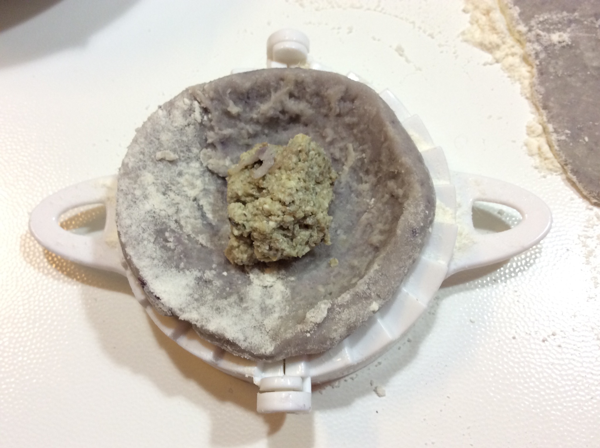 Appoggio sullo stampo per i ravioli dopo averlo infarinato e chiudo, se non l’avete potete sigillare con i rebbi di una forchetta