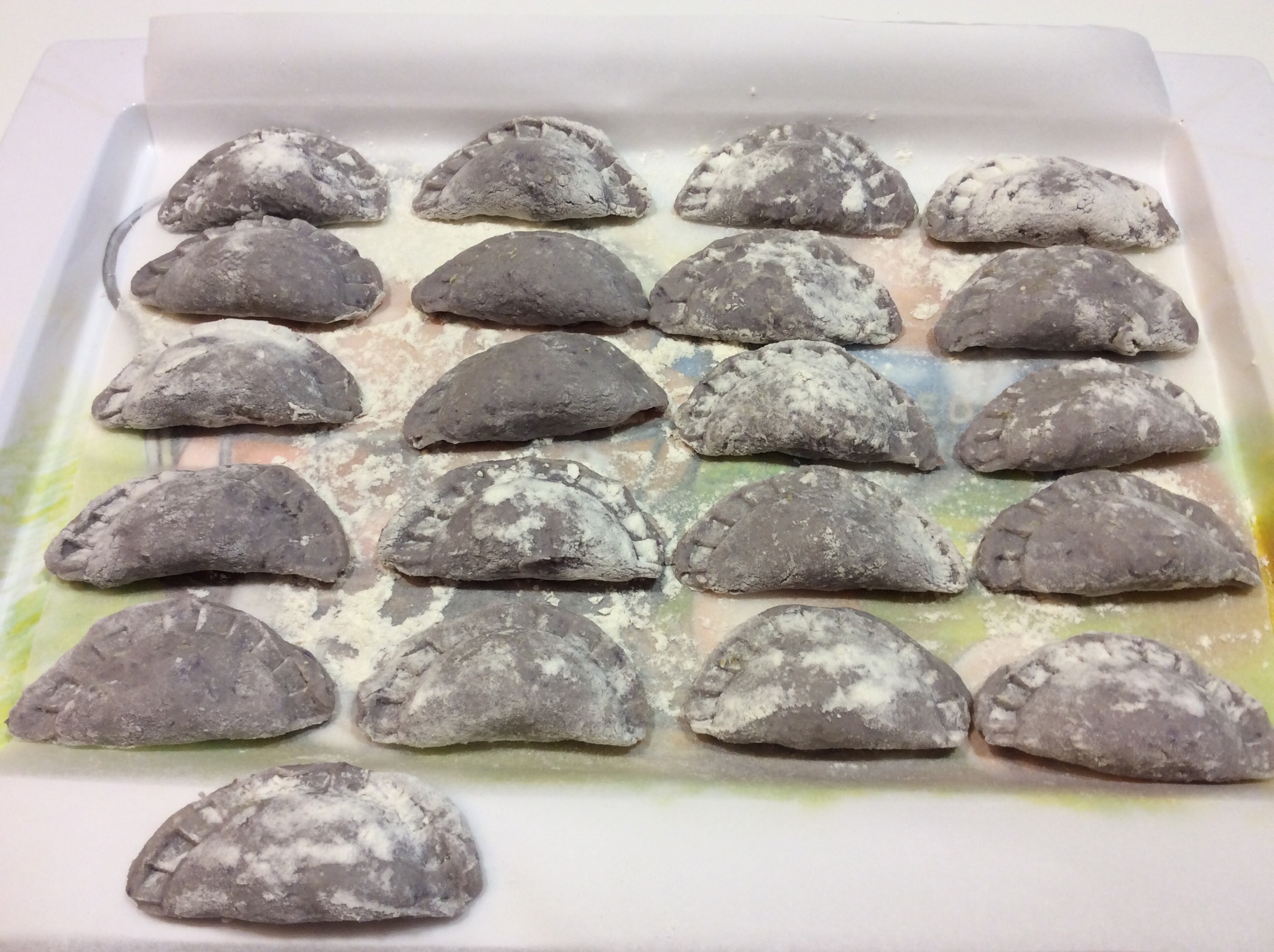 Li preparo tutti e li adagio su un vassoio ricoperto di carta forno e infarinato