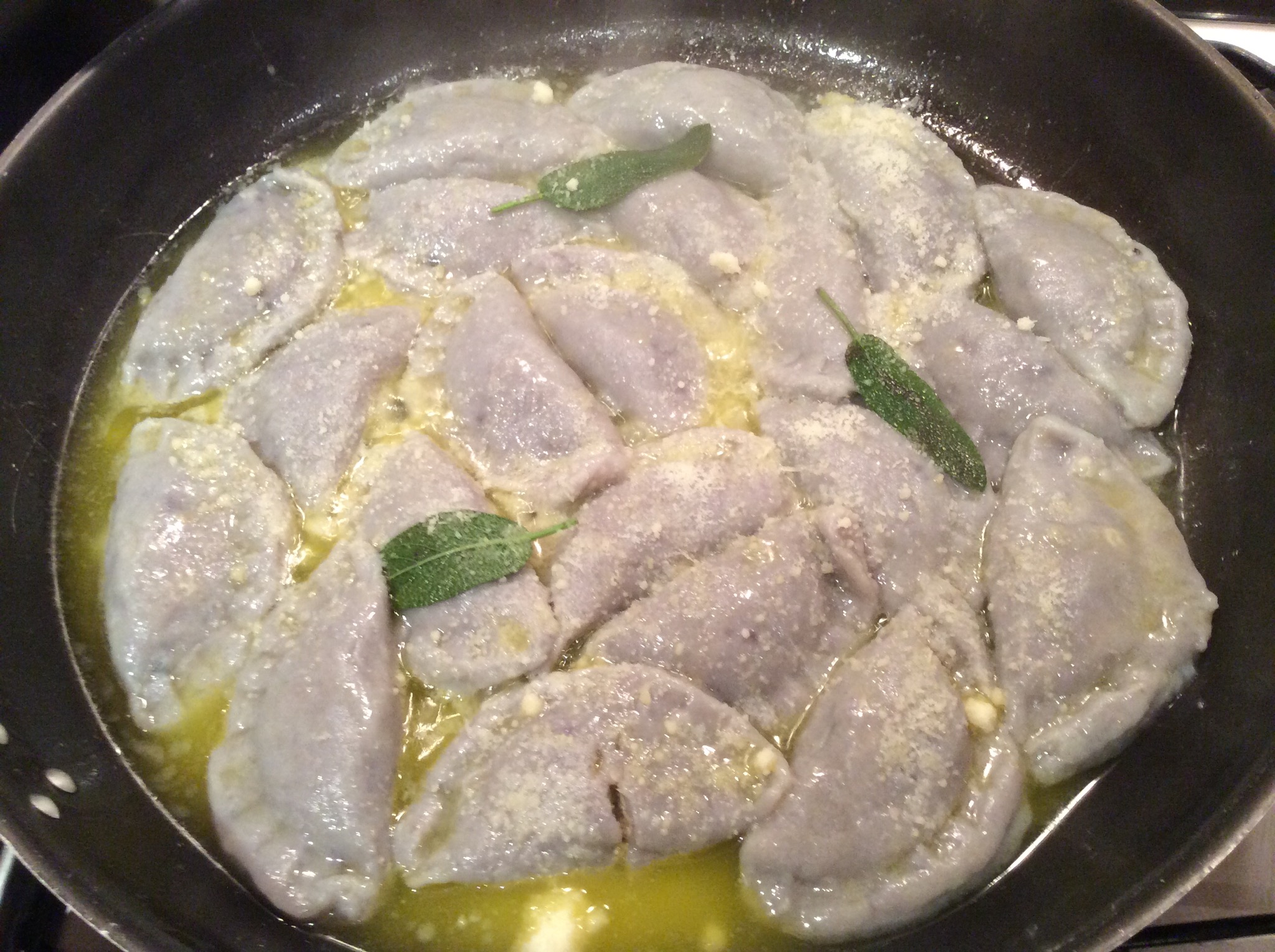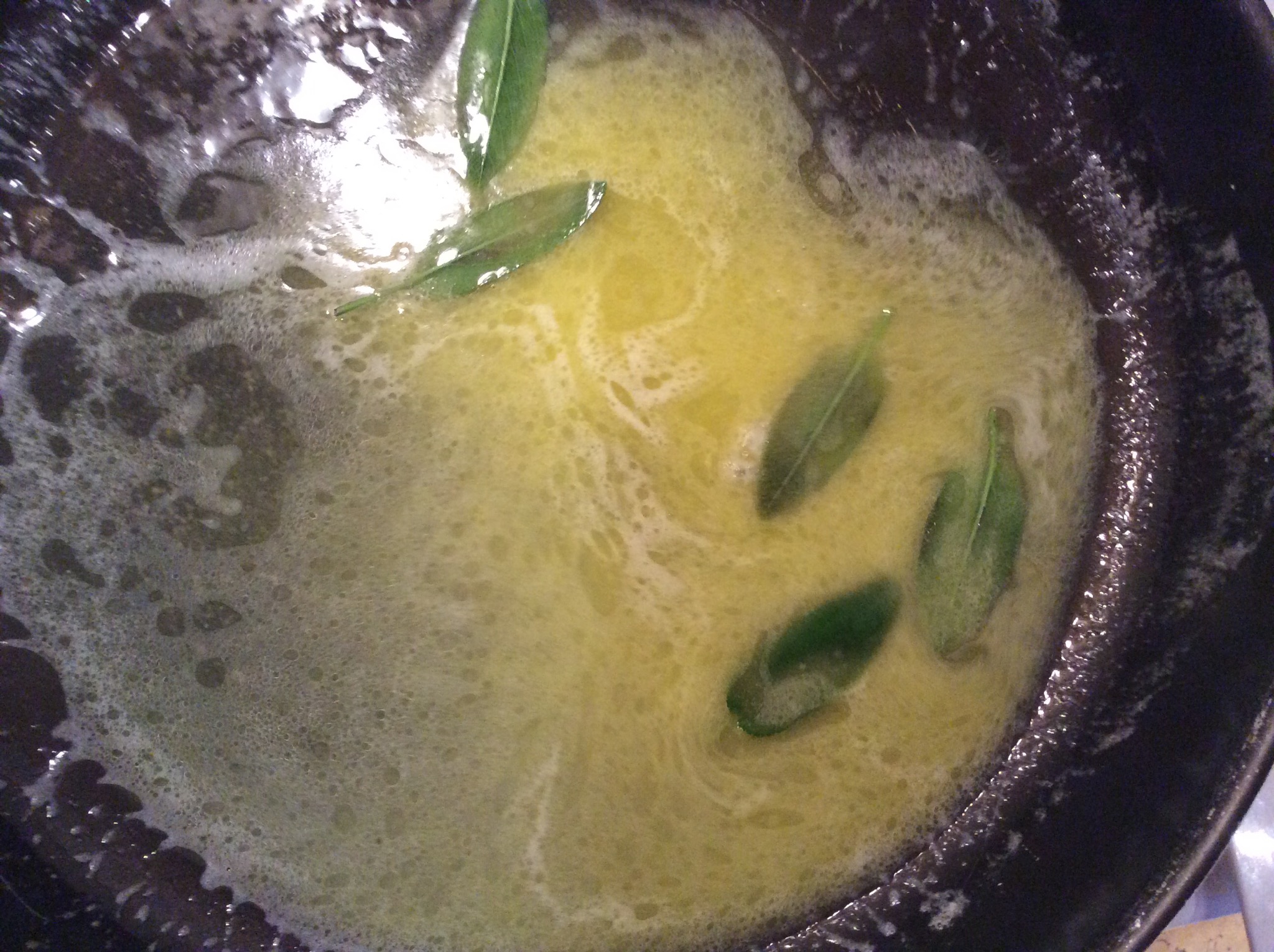 Quando iniziano a sfrigolare verso un mestolino di acqua di cottura e muovo la padella per emulsionare, si deve formare una cremina densa, in questo modo resterà più digeribile del classico burro nocciola che si adoperava un tempo