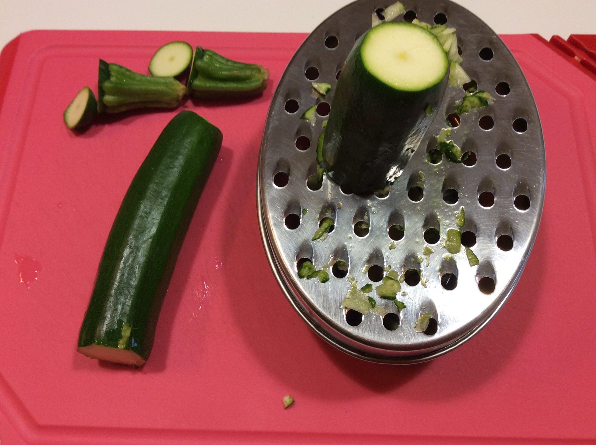 Lavo, spunto le zucchine e le grattugio con una grattugia a fori larghi