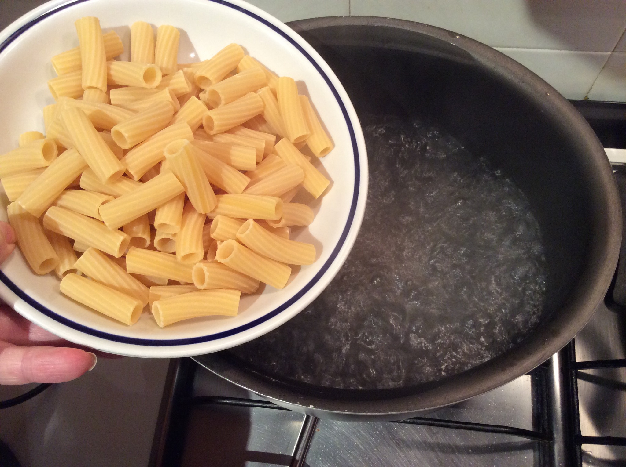 In una padella con acqua e sale in ebollizione cuocio la pasta
