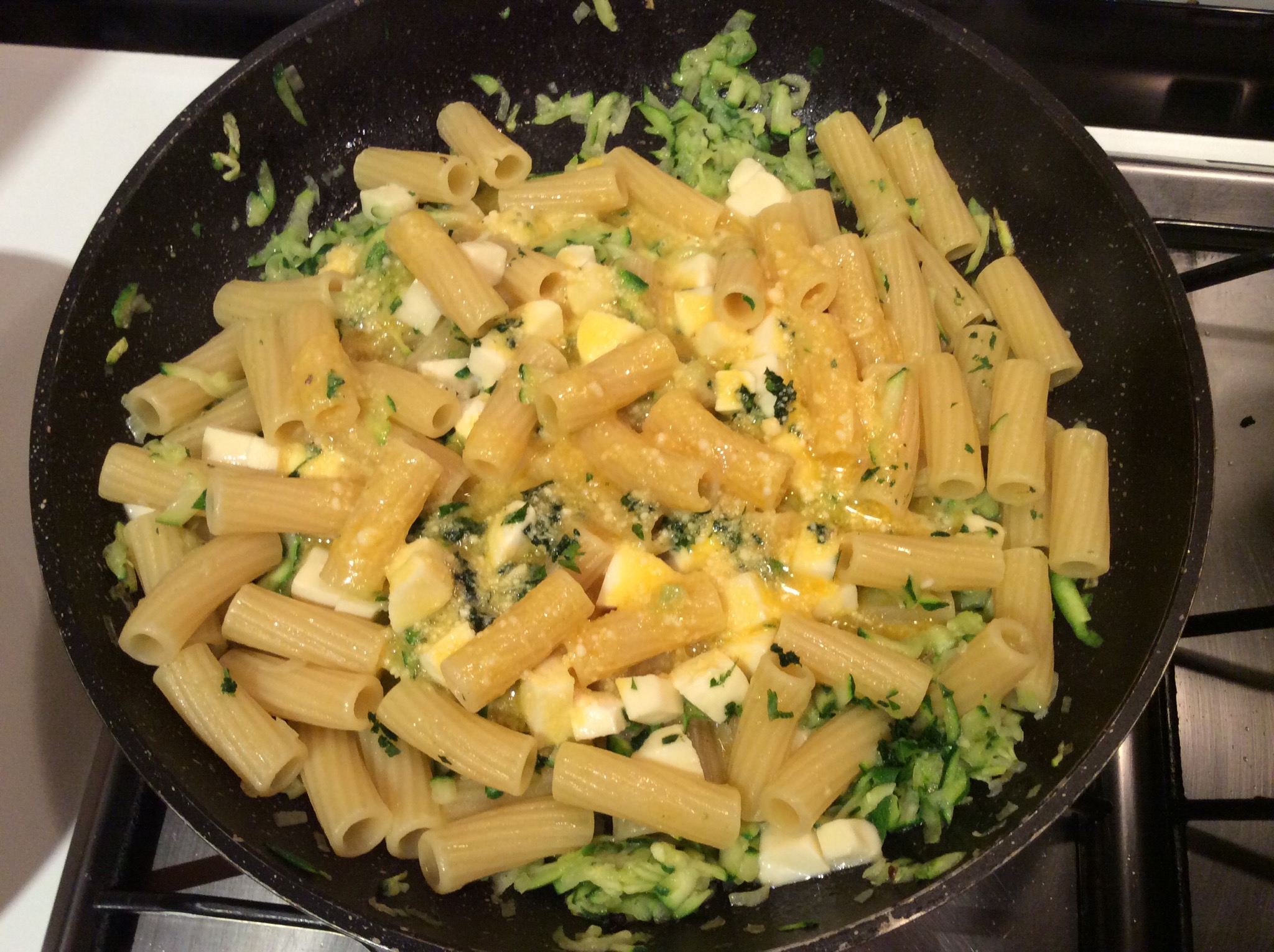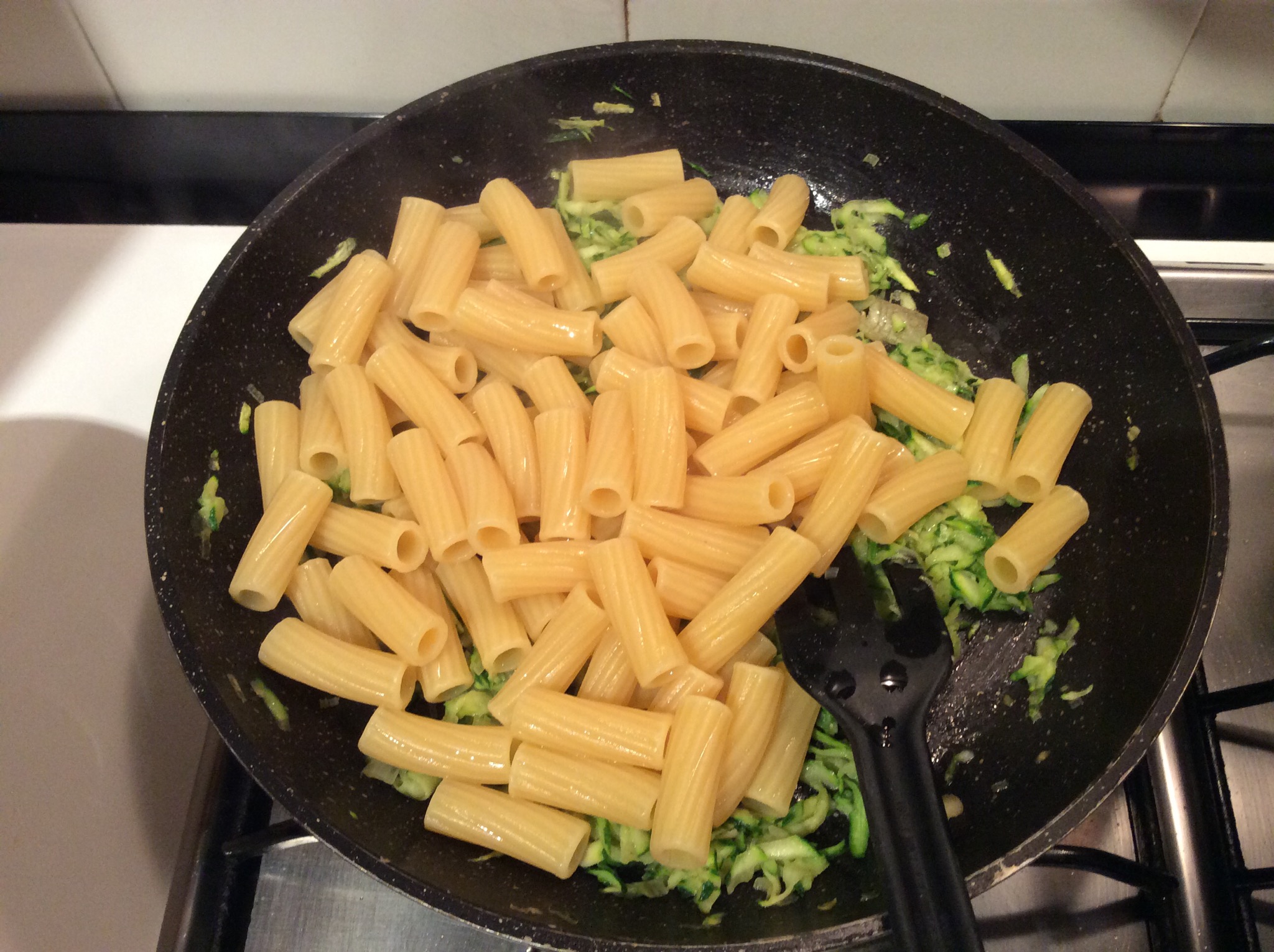 Scolo la pasta al dente e la aggiungo alle zucchine