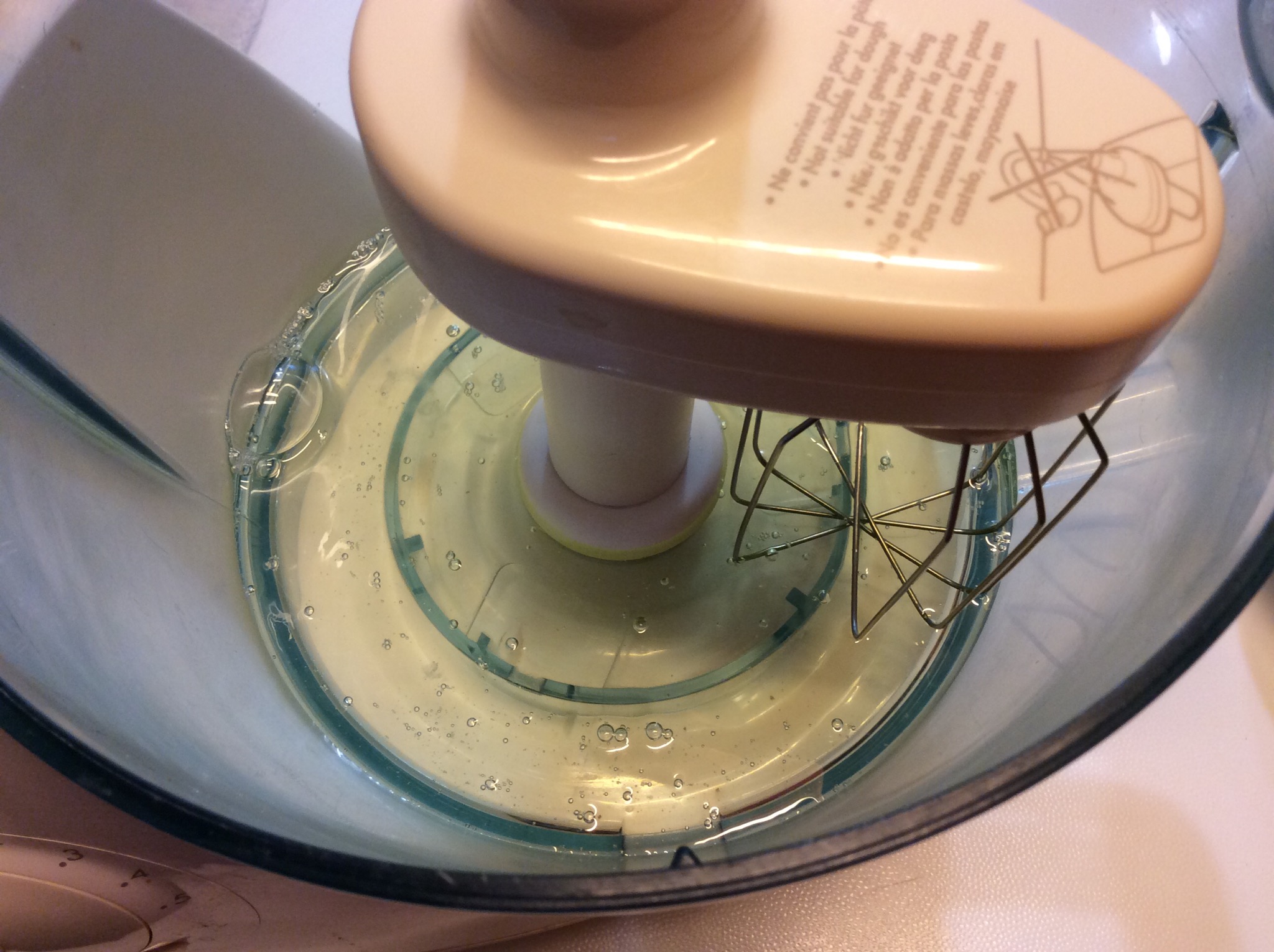 Le tolgo dal mixer, lavo bene il contenitore e poi verso gli albumi e inizio a montare