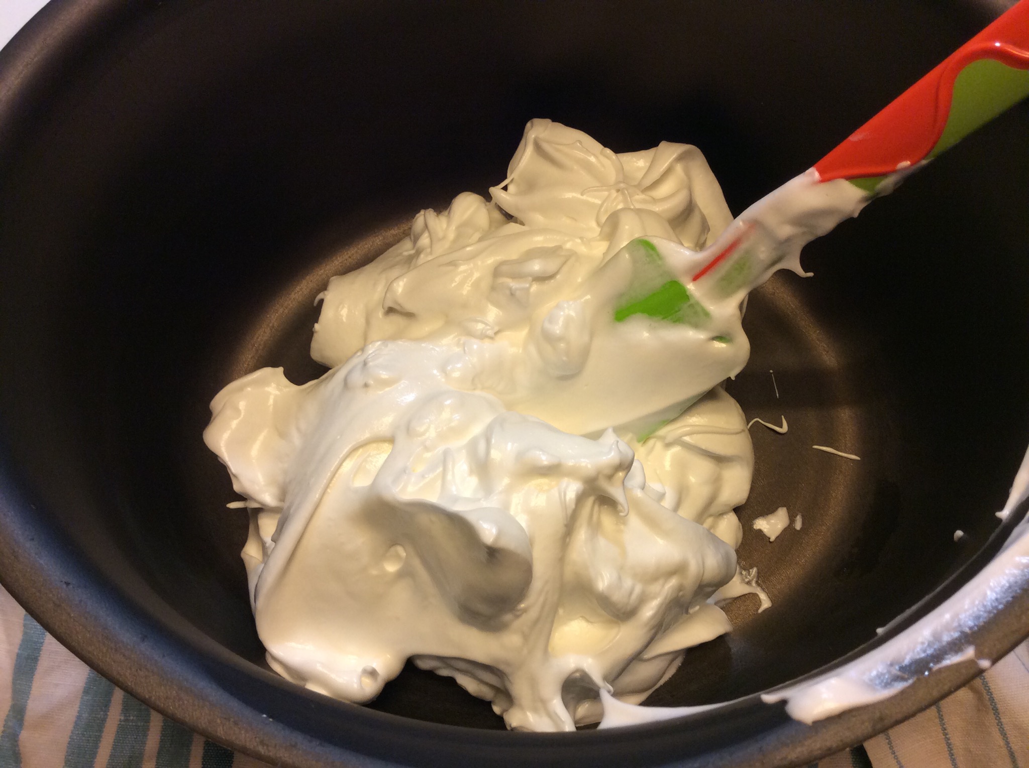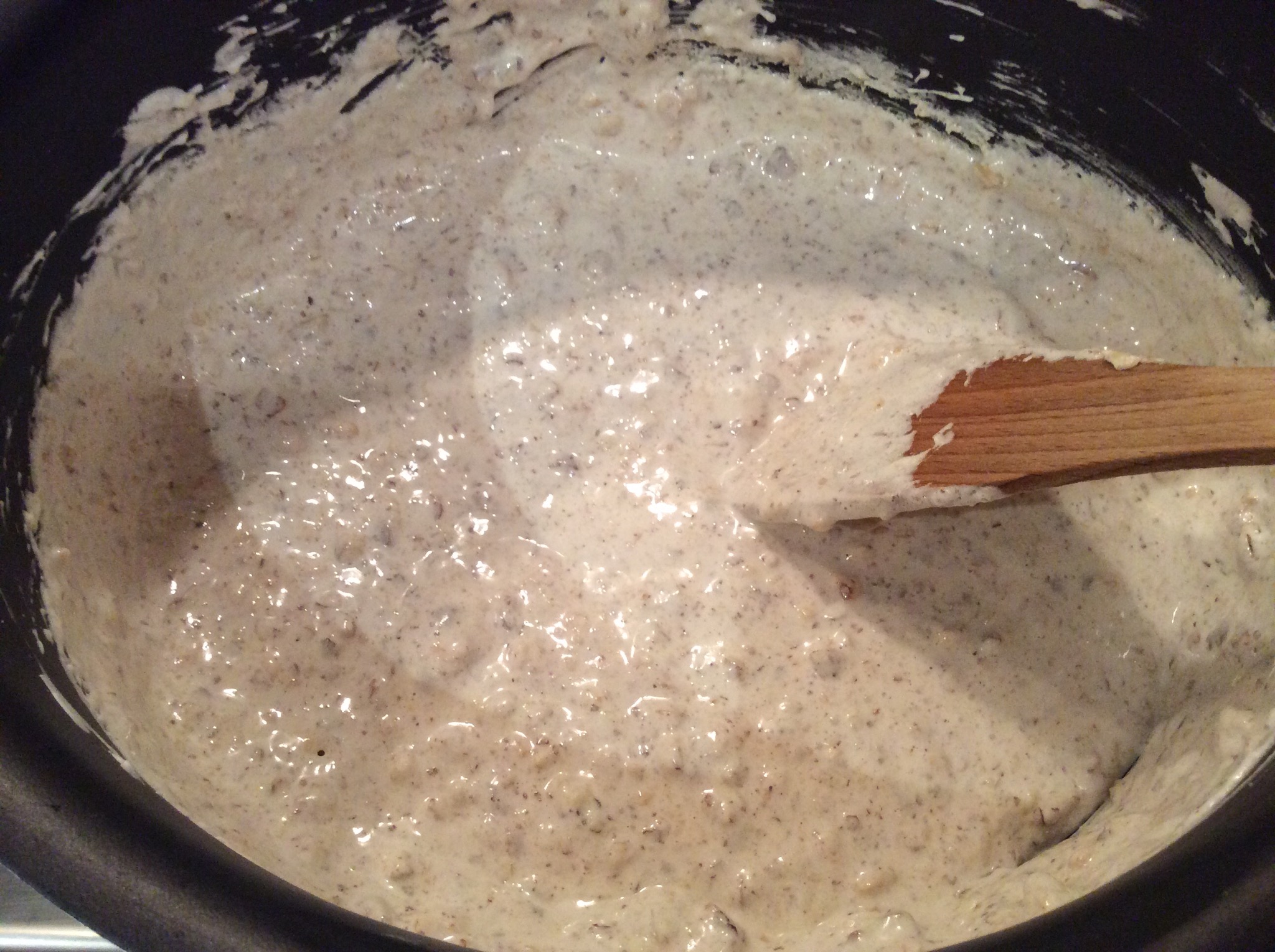 Dopo circa 15 minuti vedrete che l’impasto inizierà ad asciugare, se avete un termometro la temperatura ideale è di 90 gradi, ma potete fare tranquillamente ad occhio, è pronto quando inizia a compattare