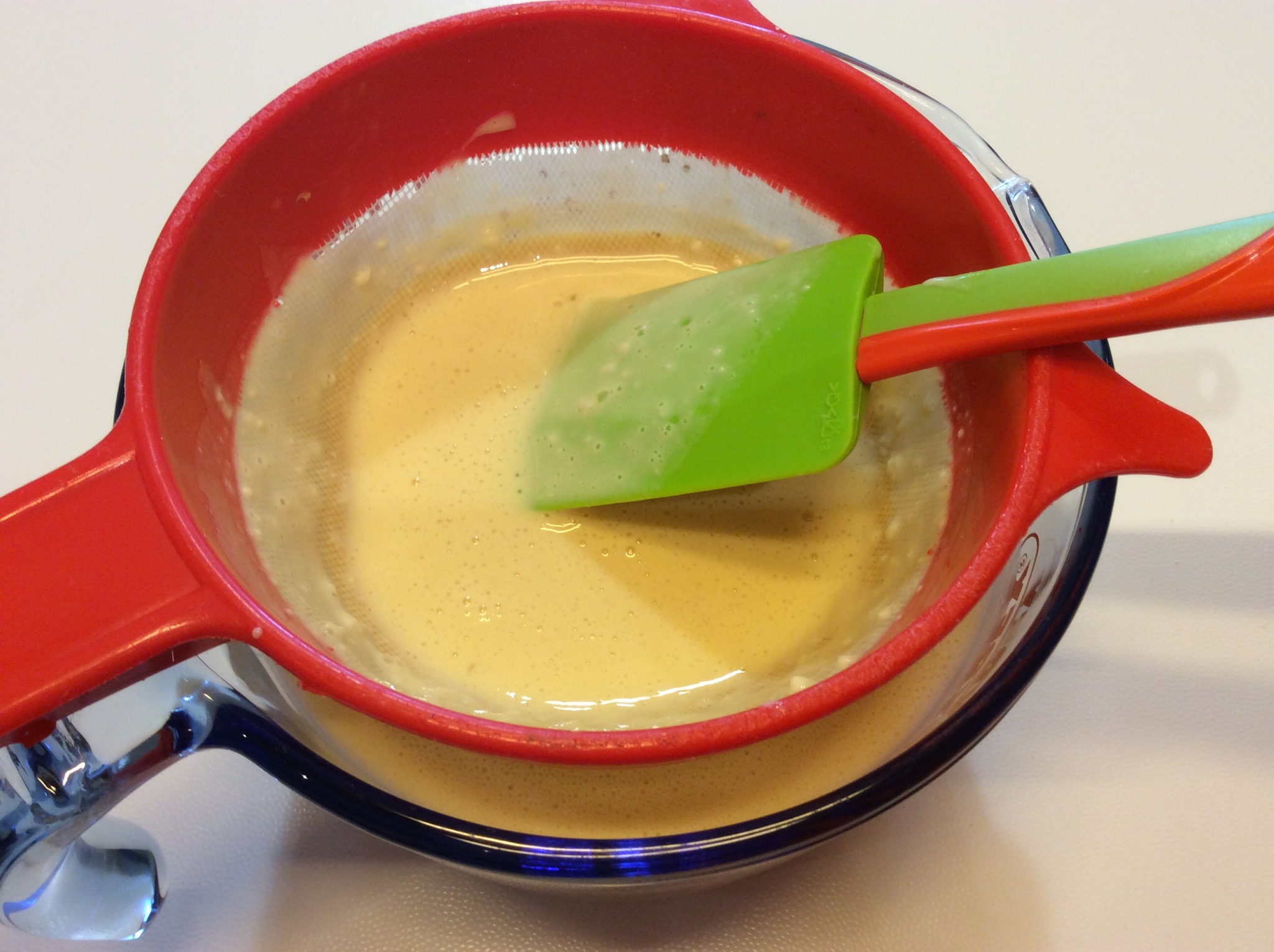 Filtro la pastella attraverso un colino per avere una pastella liscia e vellutata