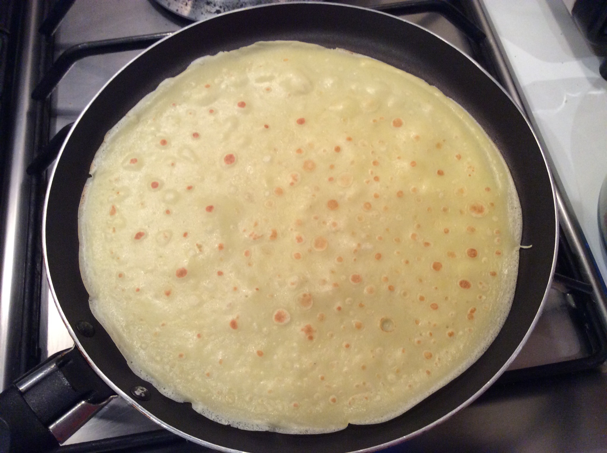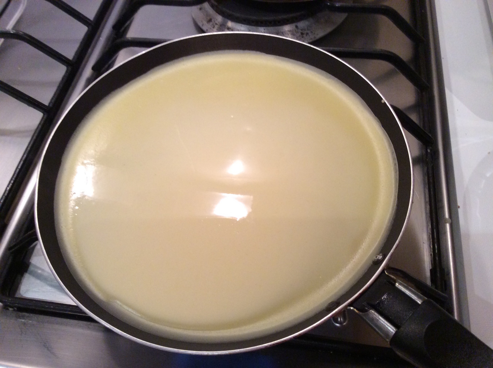 Scaldo il pentolino ungendolo leggermente e verso un mestolino di pastella