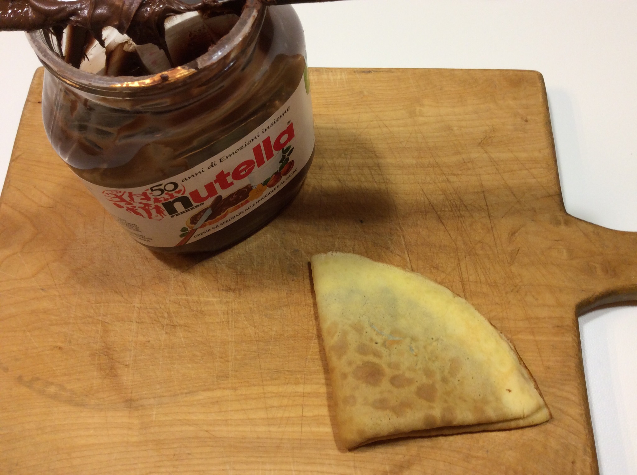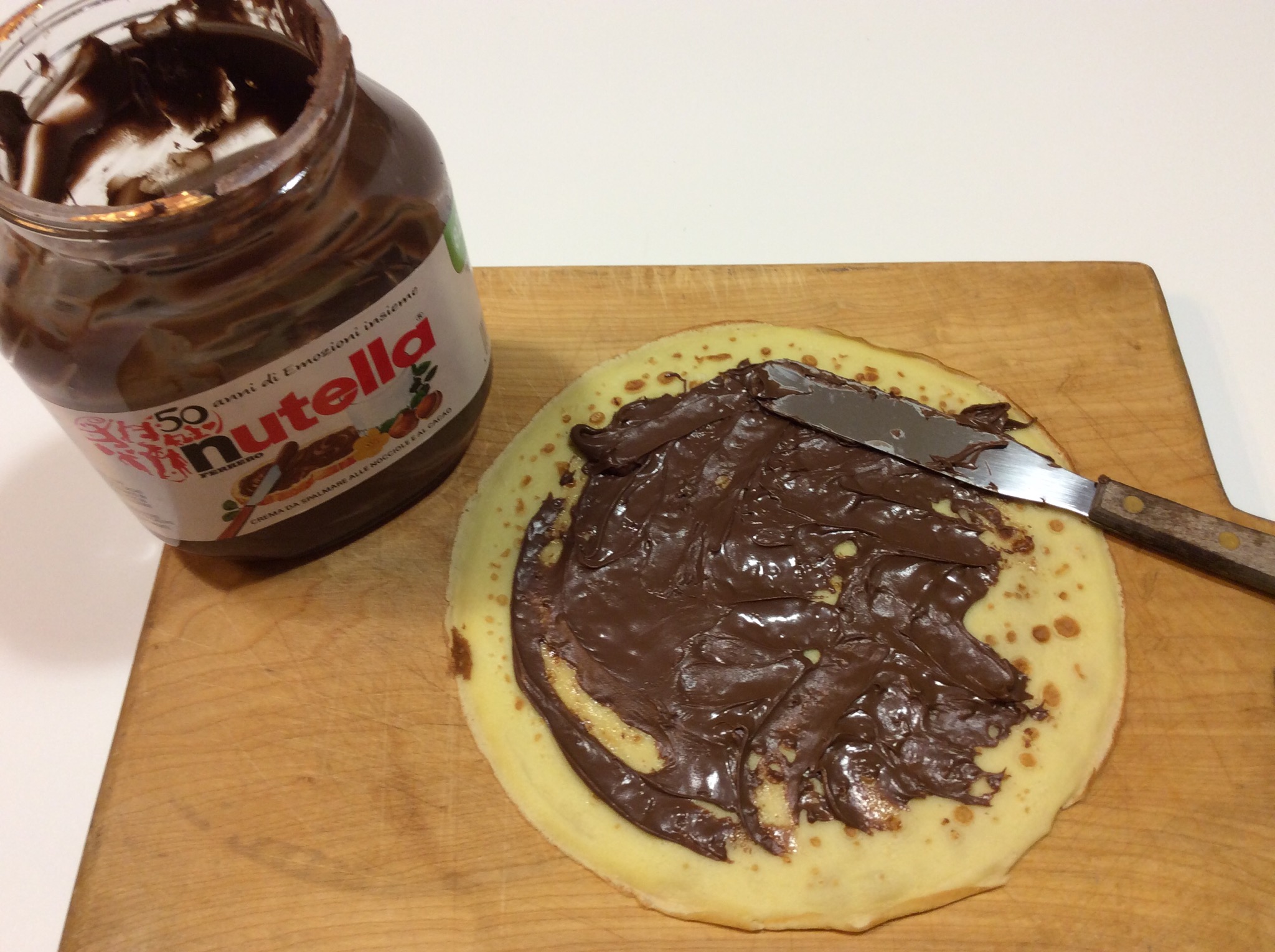 Le cospargo di Nutella, se volete ammorbidirla scaldatela leggermente a bagnomaria o a microonde