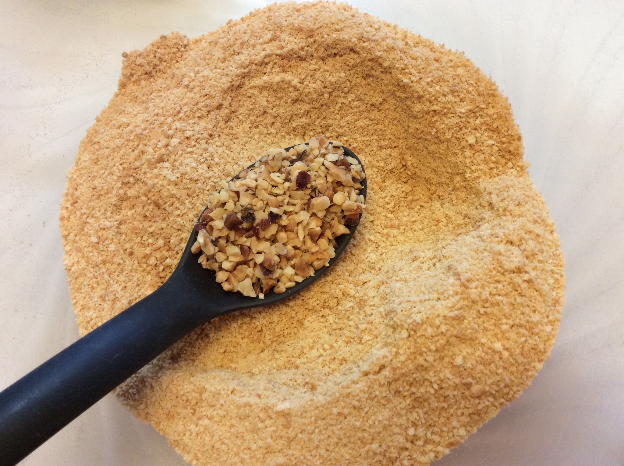 Trito i biscotti e aggiungo la granella di nocciole