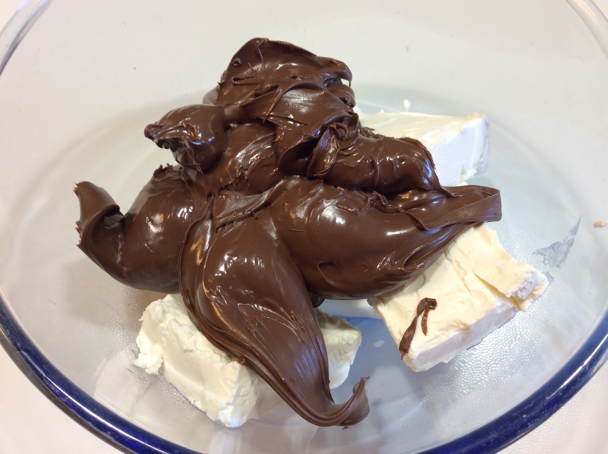 In una ciotola unisco il formaggio cremoso e la Nutella