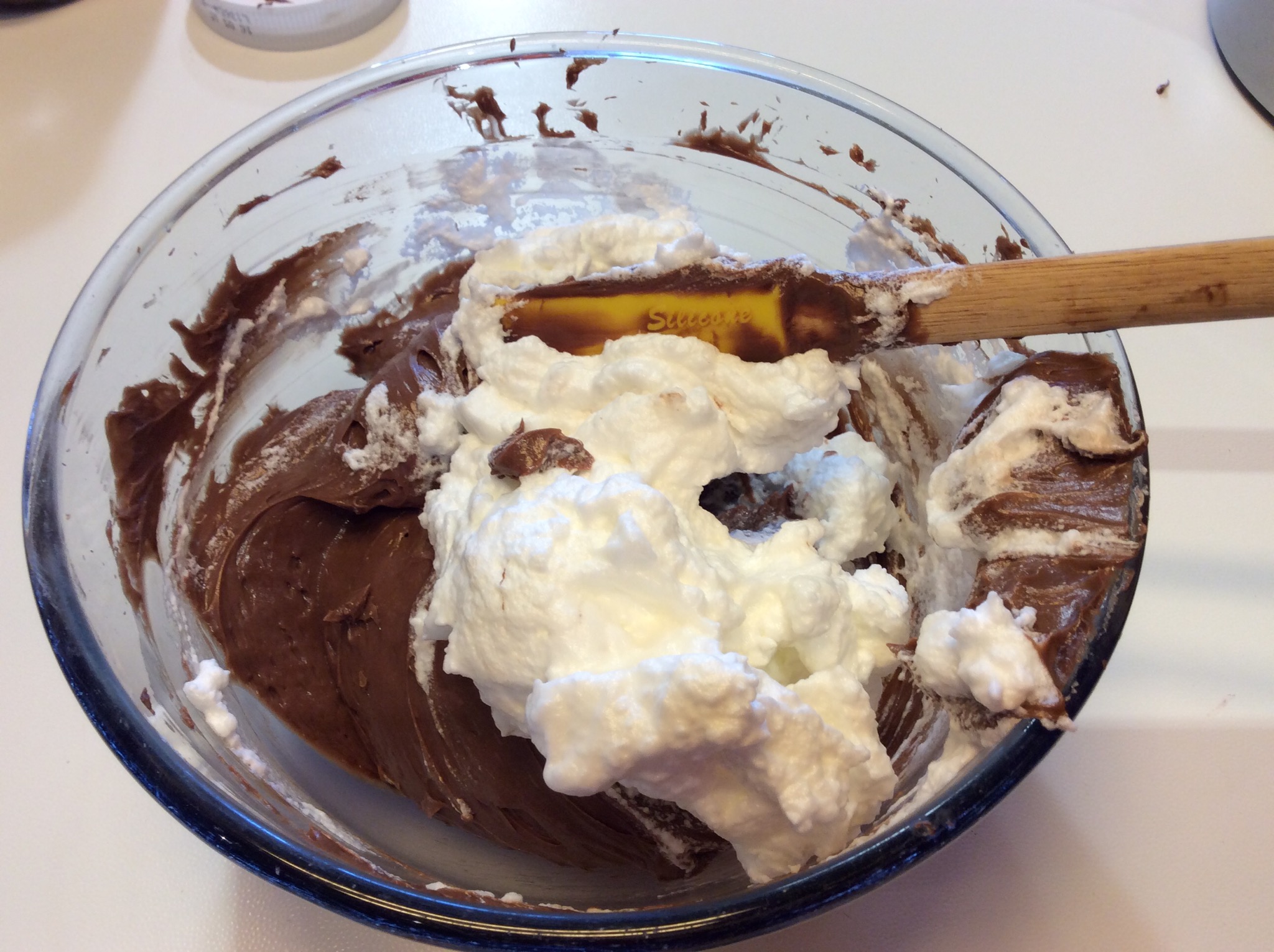 Unisco alla crema di cioccolata l’albume montato mescolando delicatamente