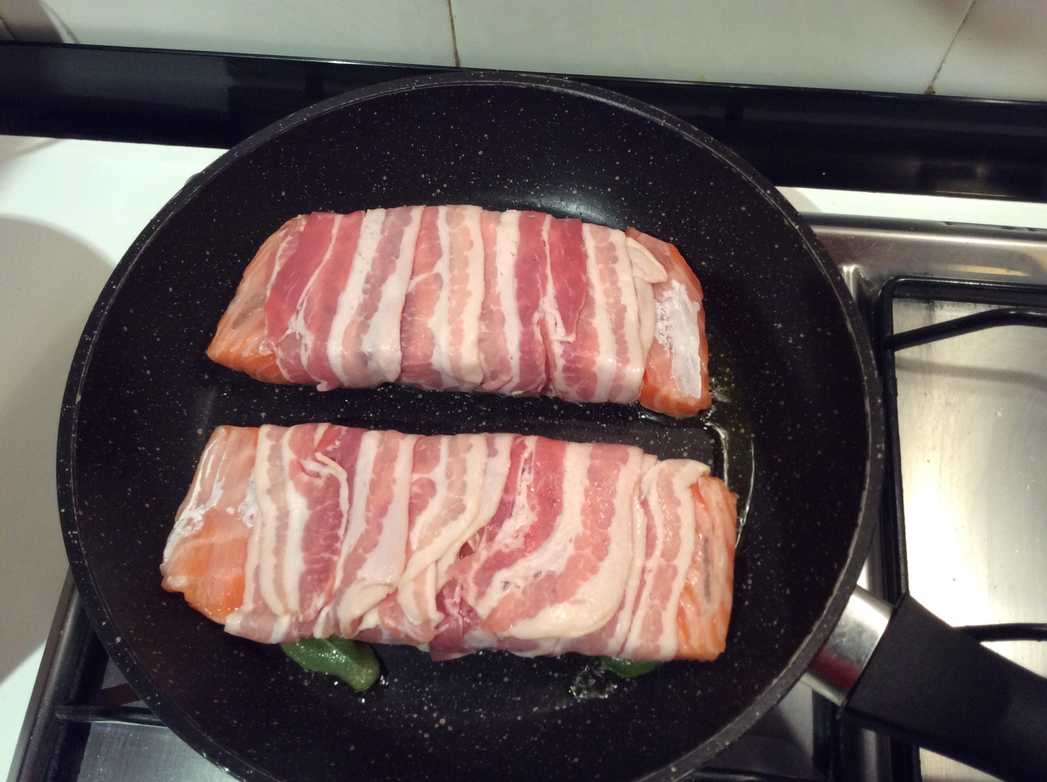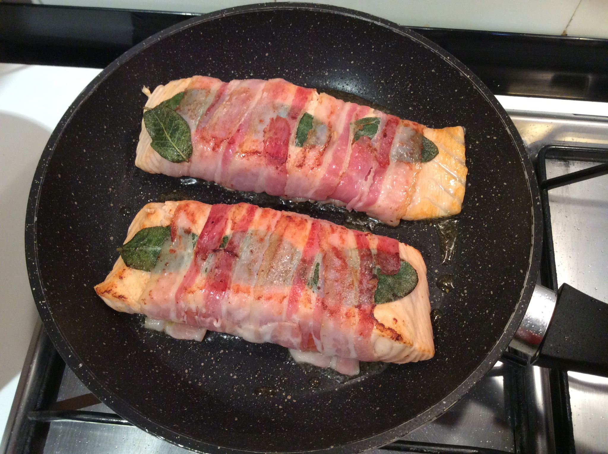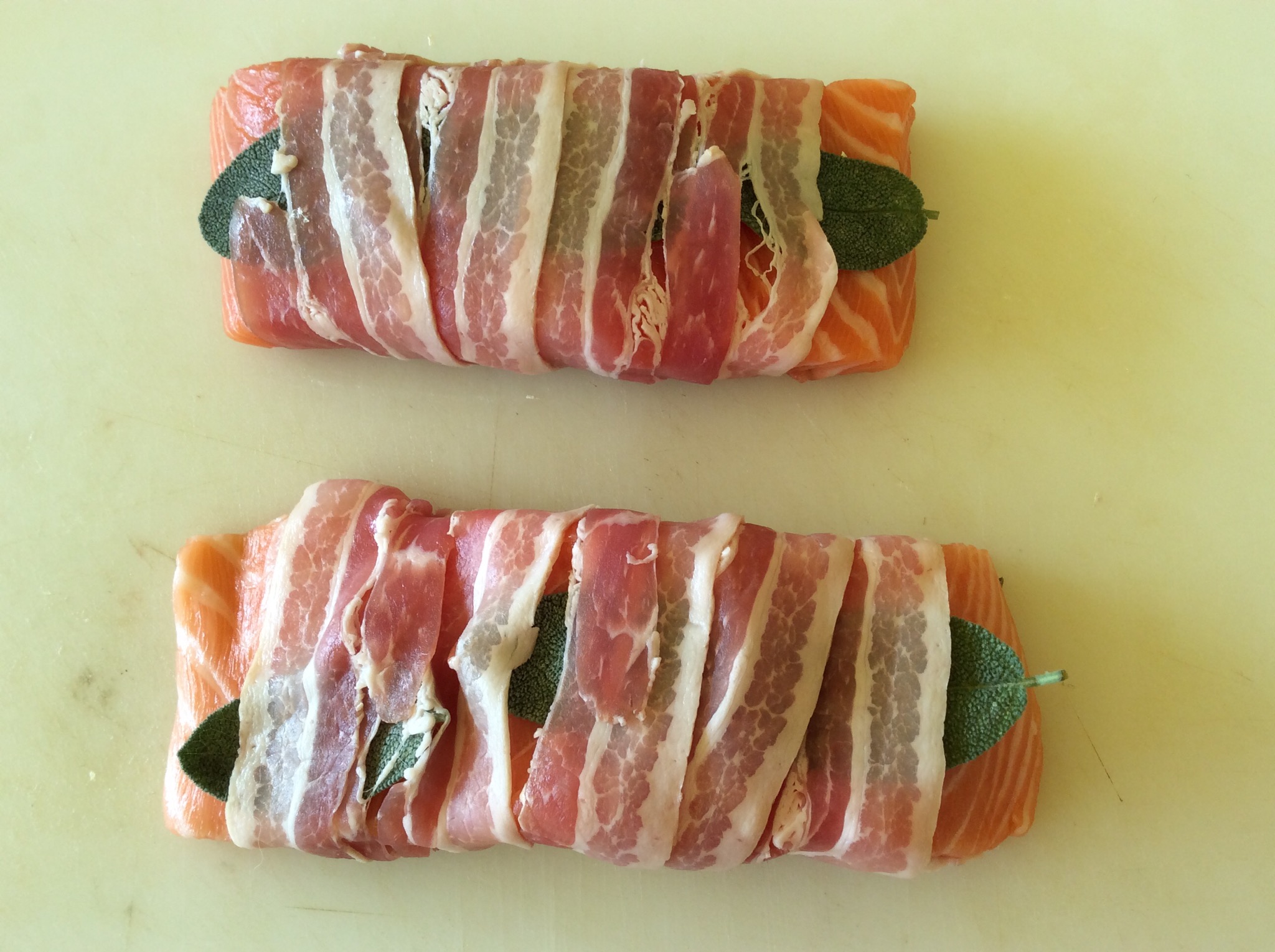 Arrotolo il salmone nella pancetta