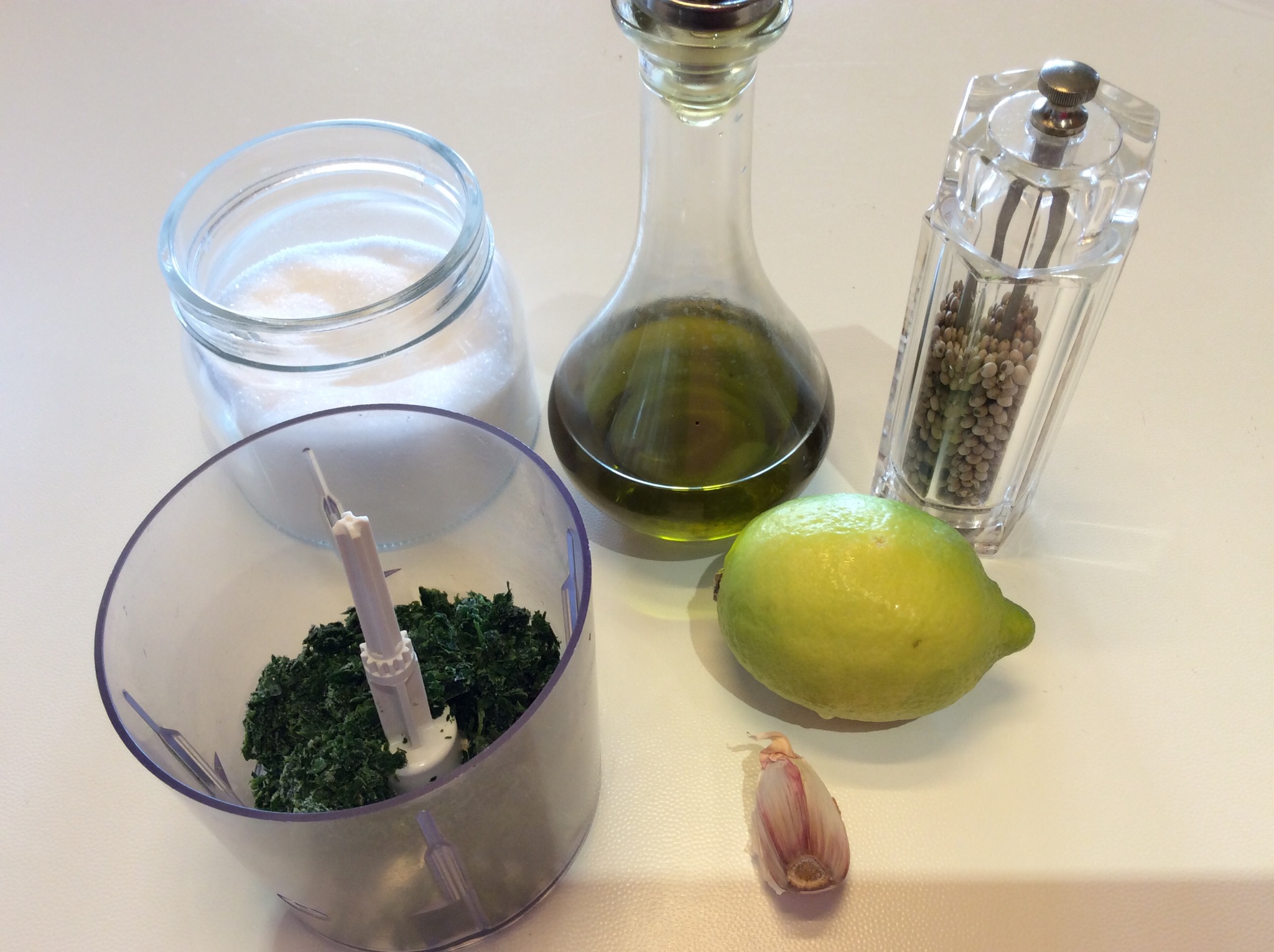 In un mixer verso il prezzemolo, due striscioline di buccia di limone, solo la parte gialla, un pezzetto di aglio se vi piace, sale, pepe, olio extravergine