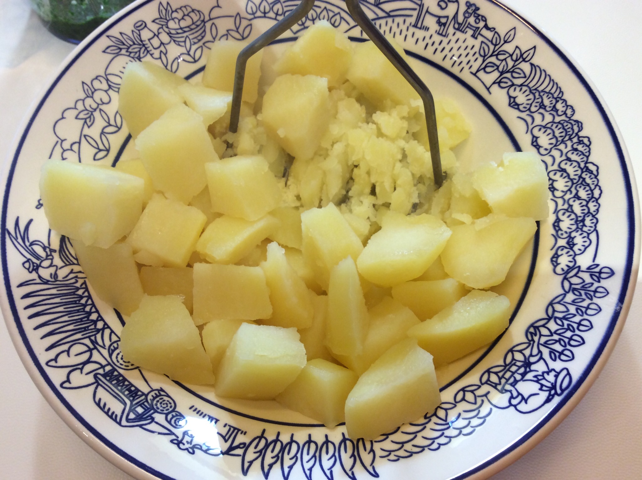 Faccio lessare le patate, scegliete voi se nella maniera classica o a microonde, con uno schiacciapatate le schiaccio grossolanamente