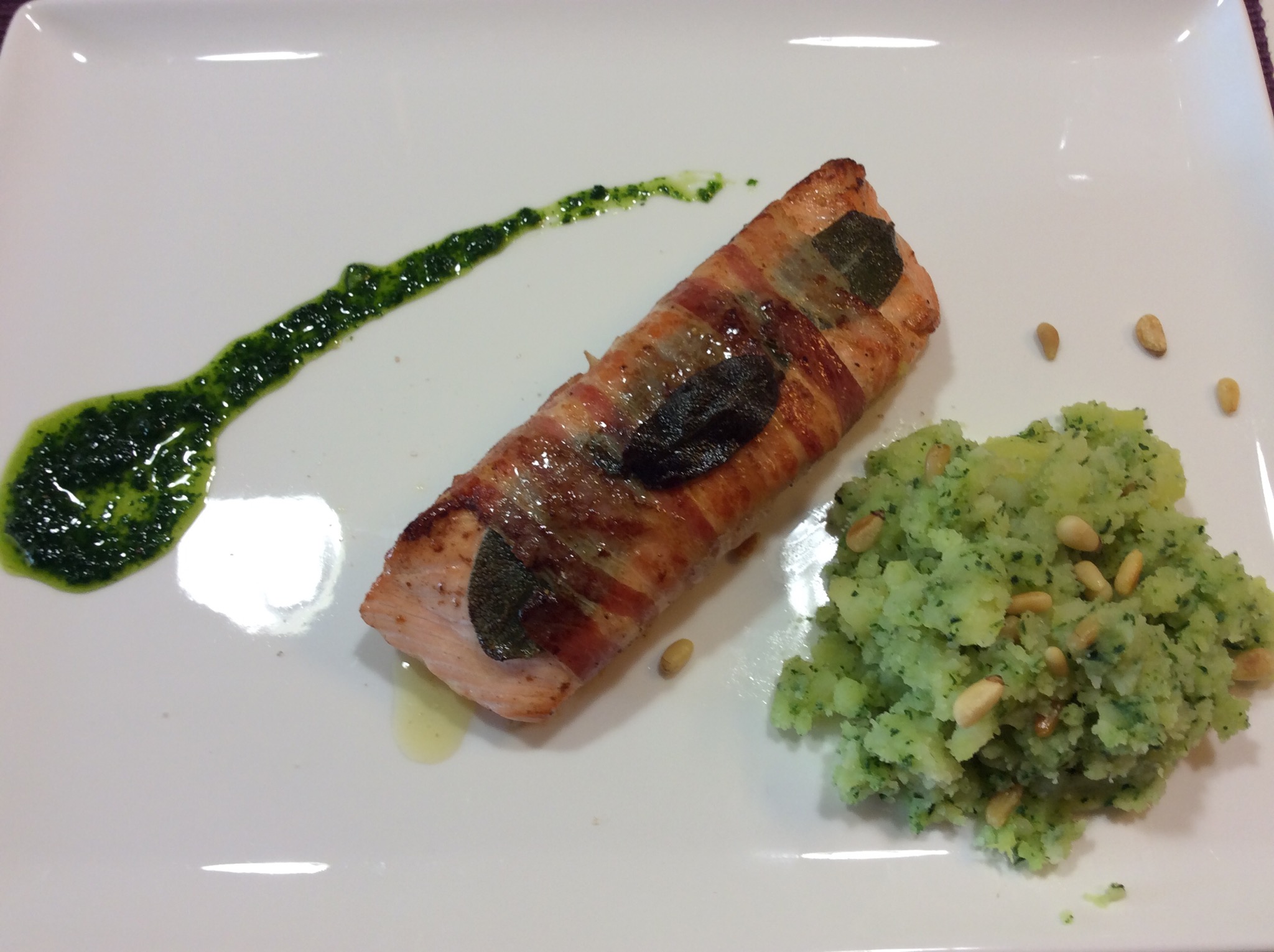 “ SALTIMBOCCA ” DI SALMONE CON PATATE STRACCIATE E PINOLI