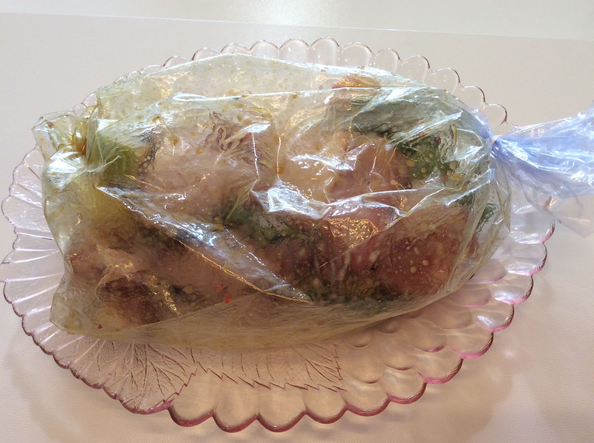 Lo lascio riposare per un paio d’ore, massaggiandolo ogni tanto, se volete potete prepararlo il giorno prima e conservarlo in frigorifero, sarà ancora più saporito