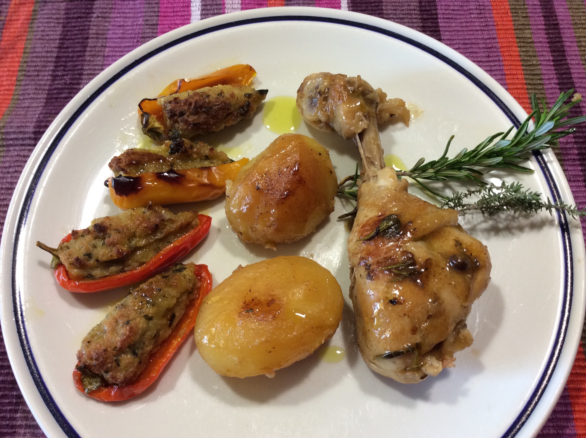 Io l’ho servito con dei mini peperoni ripieni al forno, la ricetta la trovate sul blog nella sezione contorni( mini peperoni ripieni)