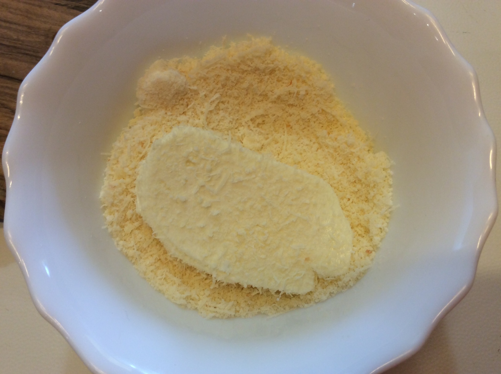 Avvolgo ogni fettina nel parmigiano grattugiato