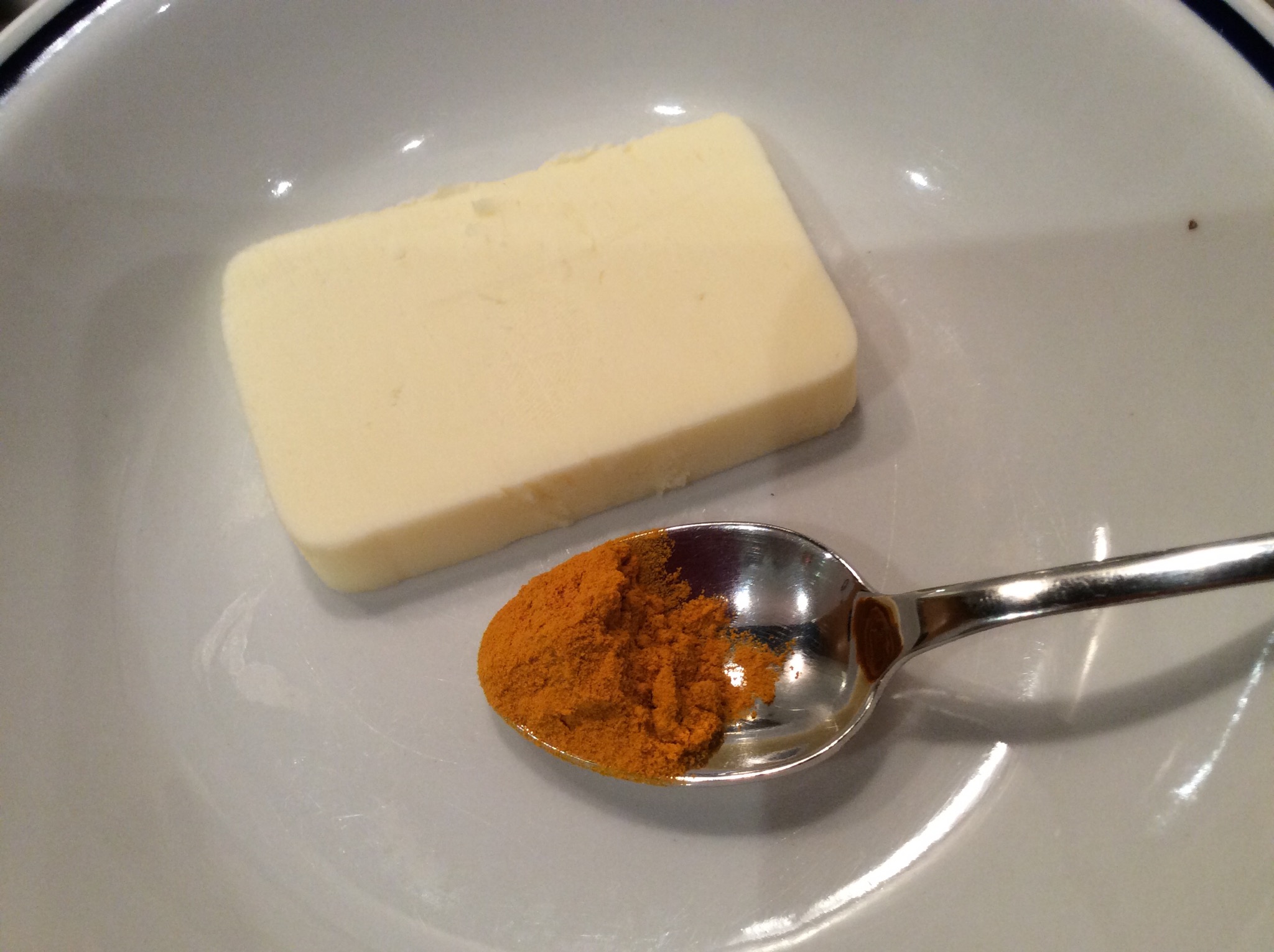 In una ciotoline unisco il burro con un cucchiaino di curcuma